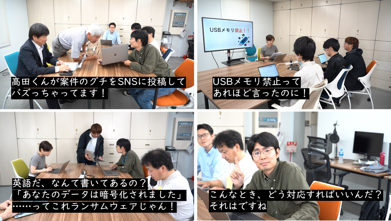 架空のセキュリティ事故対応動画を見て、自分がその場にいたらどう行動・対応するか検討