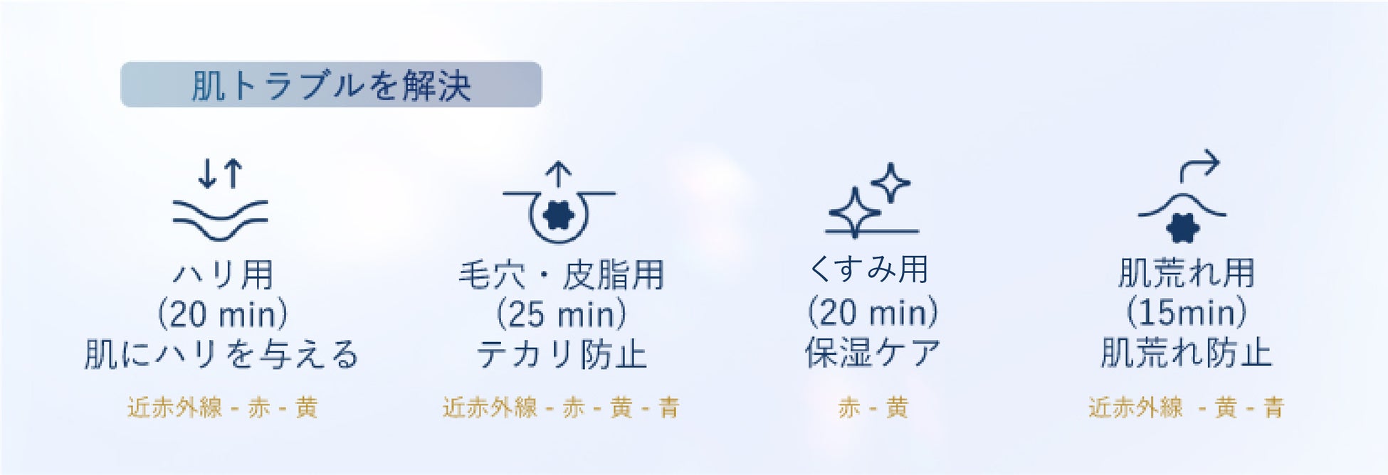 乾燥・ハリ、毛穴・皮脂、くすみ*4、肌荒れの4モードを搭載し、日々変化する肌トラブルに合わせて、お好みのスキンケアを実現します。