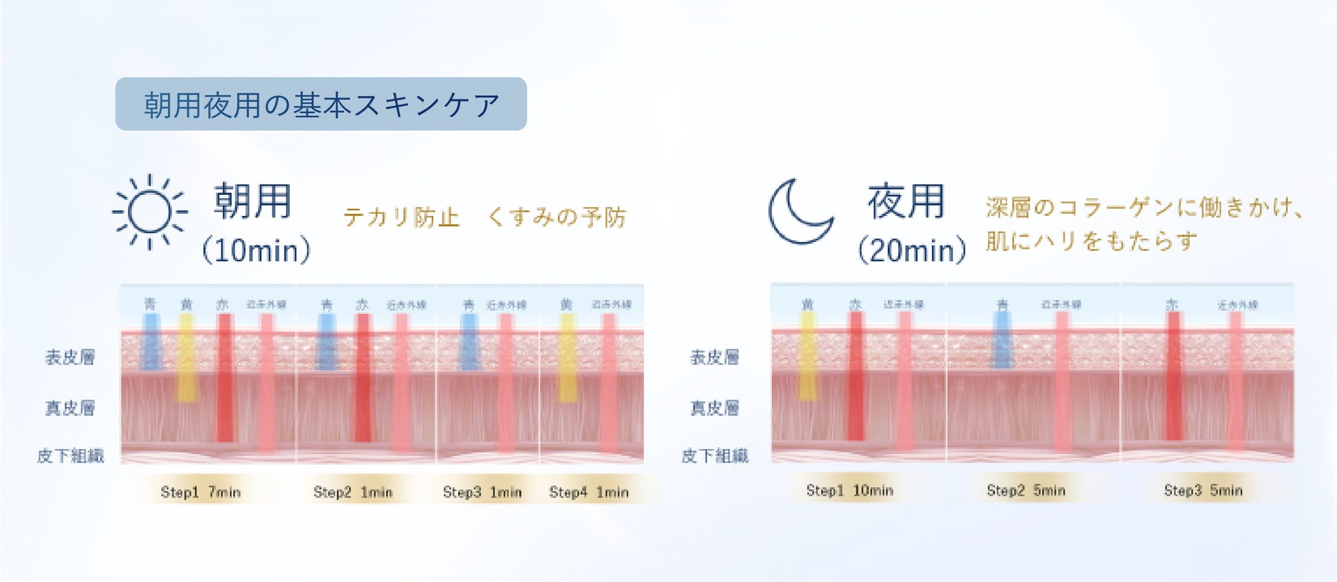 ① 朝用モード(10分間) :Tゾーンのコンディションを整える、くすみ*4予防