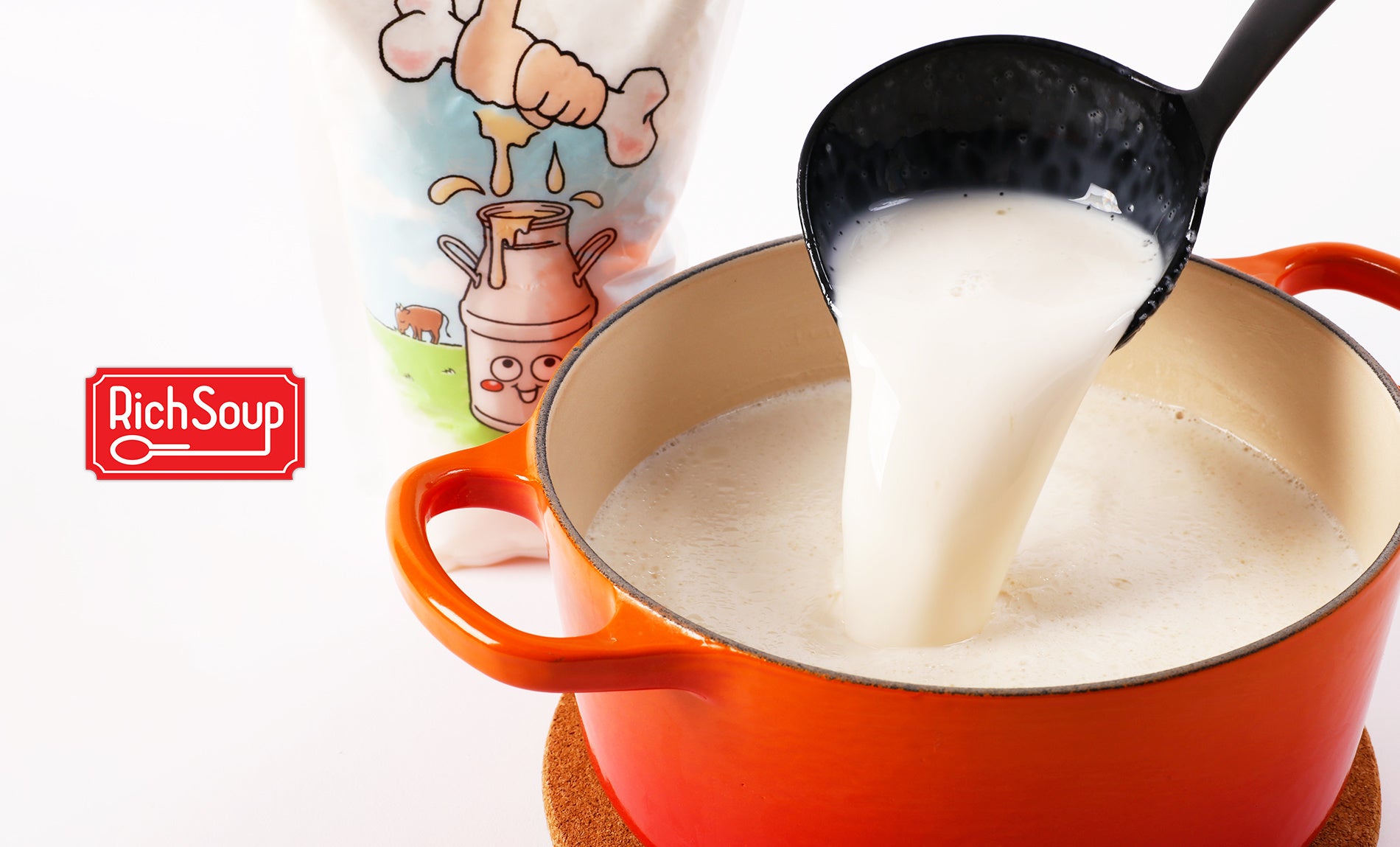 "Rich"には「贅沢な・濃厚な・豊富な」の3つの意味が込められており、なかなか家庭では再現できない濃厚さで、"旨味"も"栄養"も豊富に溶け込んだボーンブロスのブランドであることを表しています。国産牛骨と鶏もみじを特殊製法で炊き上げることで真っ白で贅沢な仕上がりとなっております。美と健康のため、たくさんの方々にボーンブロスを日常的に活用していただきたく開発した新しいスープブランドです。