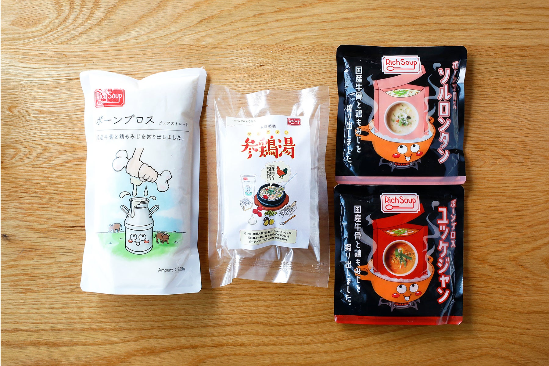 Rich Soupの魅力を一通りお試しいただけるお得なセットをご用意しました。「ボーンブロスで作る参鶏湯」をお試しいただけるほか、ボーンブロスをふんだんに使用してレトルト調理を施した「ユッケジャン」と「ソルロンタン」をお楽しみいただけます。ぜひお試しください。