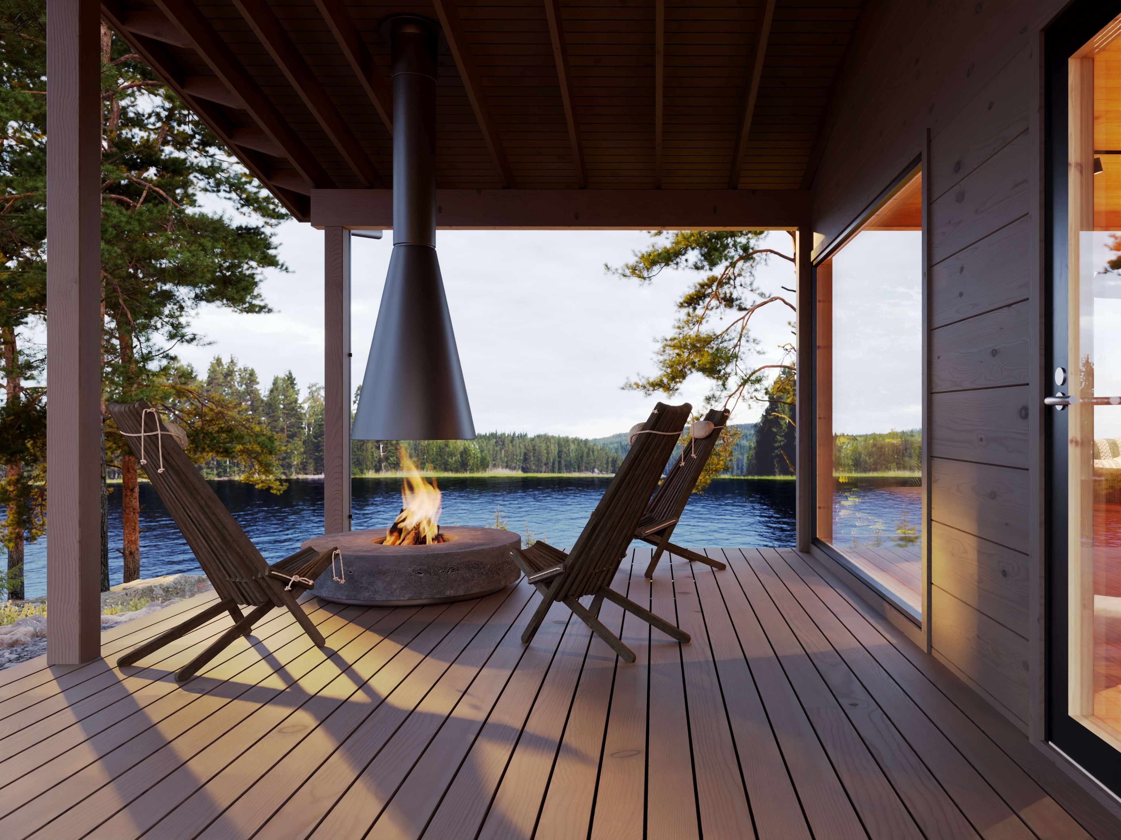 フィンランドサウナの特徴は「ロウリュ」。サウナ・ストーブの上に乗った石にお湯をかけるとサウナ室内に熱い蒸気が広がります。サウナで十分に体を暖めたら、広いテラスで外気浴。テラスに、リクライニングチェアとテーブルを用意して、サウナとテラスを往復ながらじっくりとサウナを楽しむのも贅沢な時間となるでしょう。テラスが広いので、簡易的なビニールプールや本格的なホットタブを設置して水風呂や露天風呂を楽しんでみるのも。