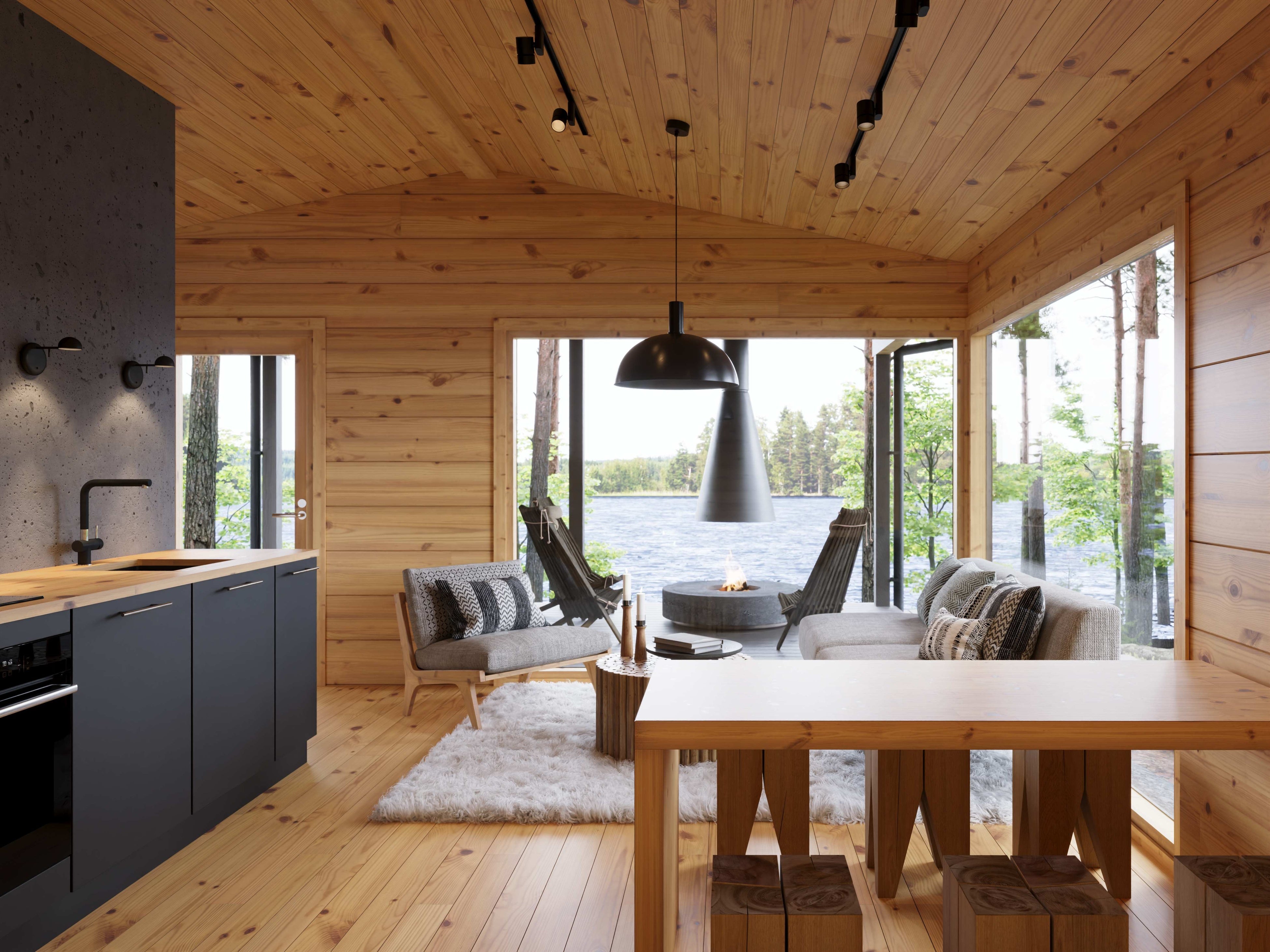 どこまでも広がる青い空に、平野に広がる緑の森、そして目の前に広がるのは湖。フィンランドならではの森と湖の風景にぴったりなのが、ホンカの「ヒュッティ」です。「フィンランドサウナのある暮らし」ができるミニマムな「コンパートメント」のようなログホーム「ヒュッティ」で、フィンランドらしい「サウナのある暮らし」を満喫してください。
