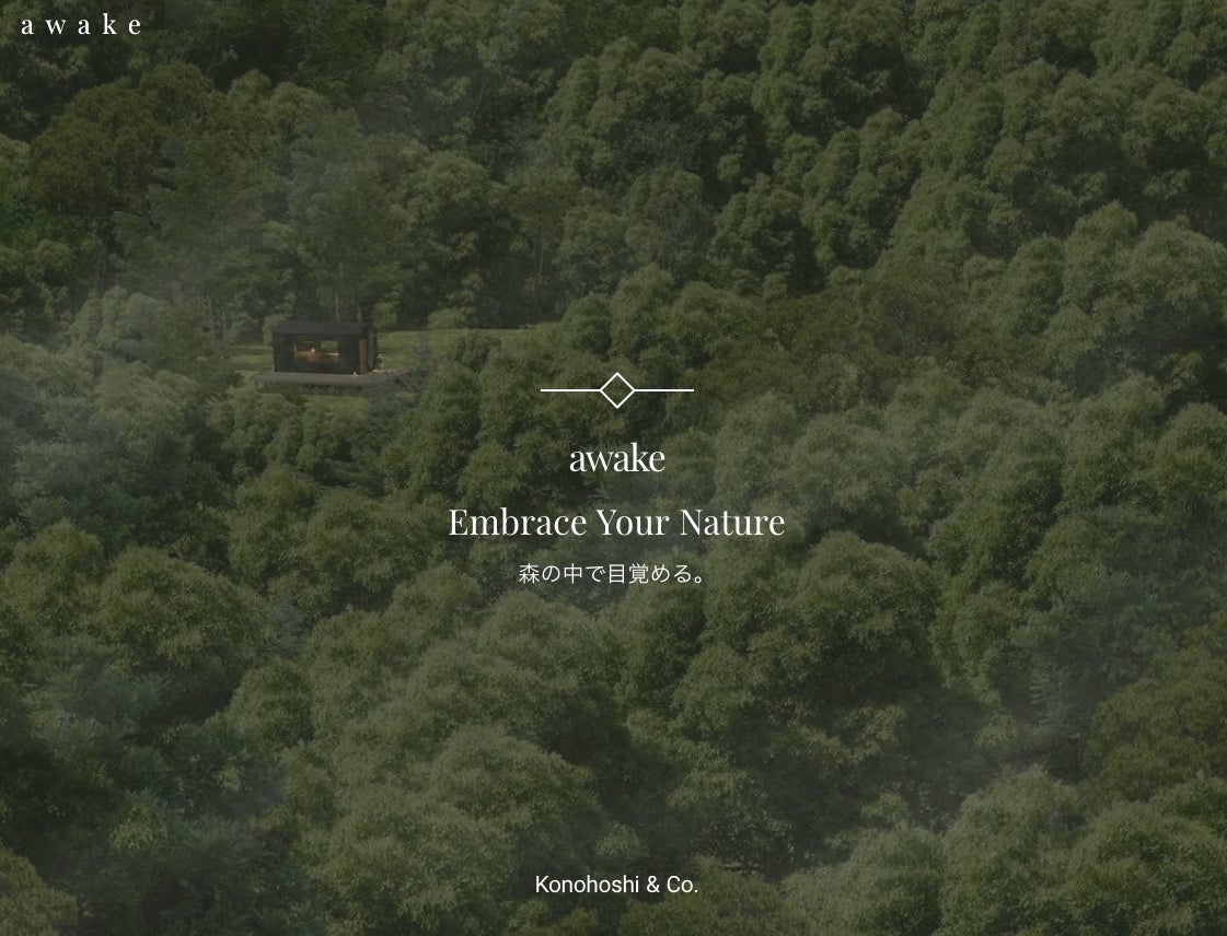 awakeはオフグリッドのキャビンを設置して森林の中での宿泊体験と森林を有する地域の文化や日々の営みを体験型のアクティビティとして提供するサービスです。日本各地の豊かな自然の中に身を置き、日々の疲れを癒やすとともに自然とつながって生きる感覚を取り戻す体験をご提供します。