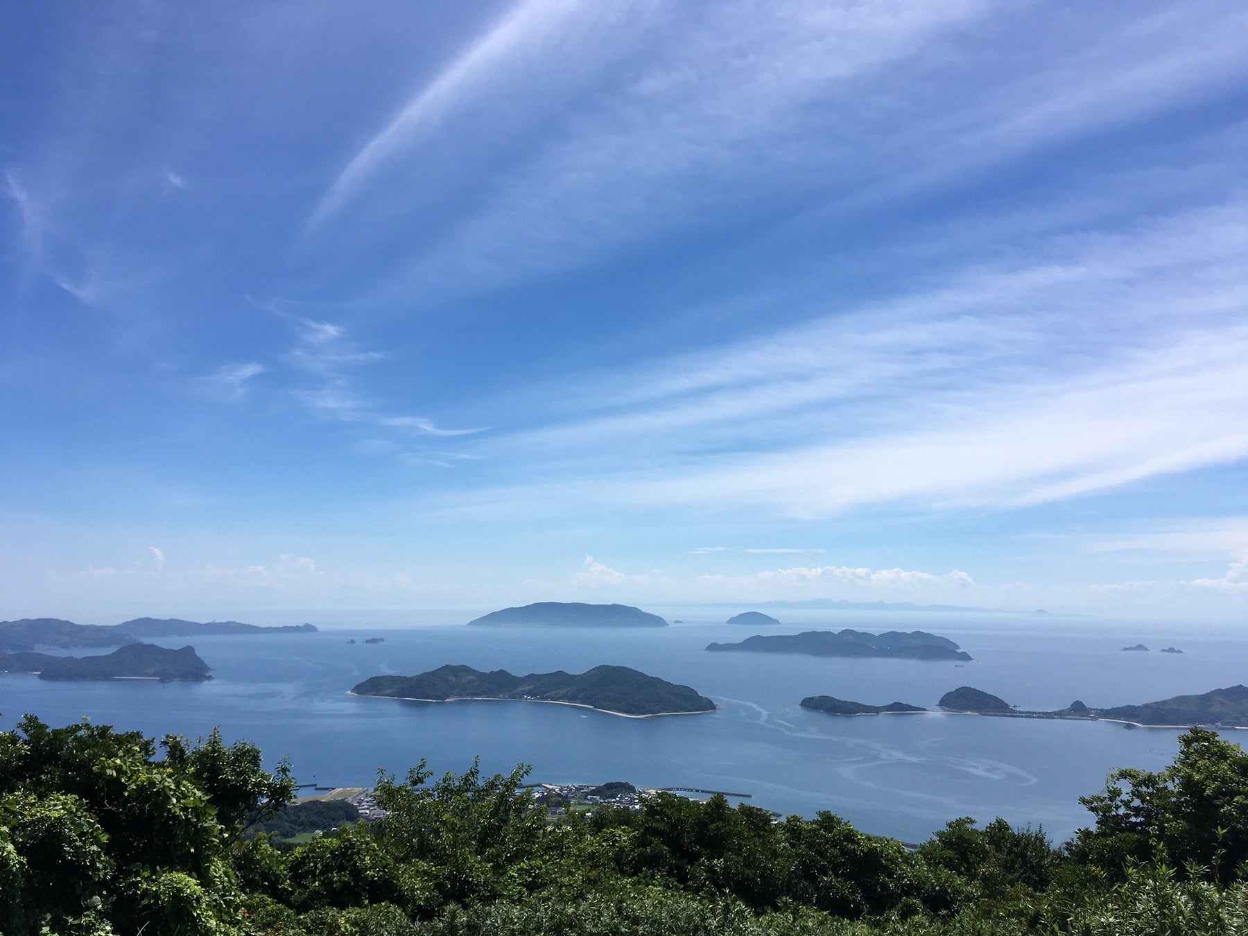 ゴール地点の大星山山頂からは、南瀬戸内海(サザンセト)が一望でき、瀬戸内海の島々や、遠くは九州・四国を眺めることができる。
