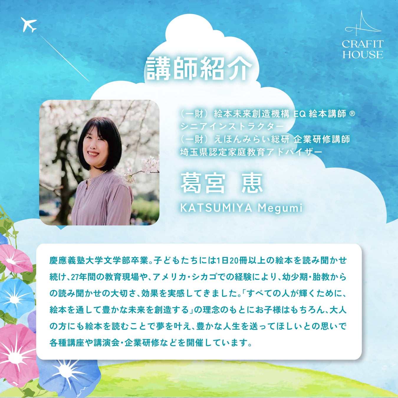 福井県坂井市で注文住宅、建売、リノベーション、不動産事業を展開するCRAFIT HOUSE(代表取締役:川端 一輝)は、7月12日(土)に坂井市のハートピア春江にて「絵本読み聞かせ&育児のヒント講座」を開催いたします。