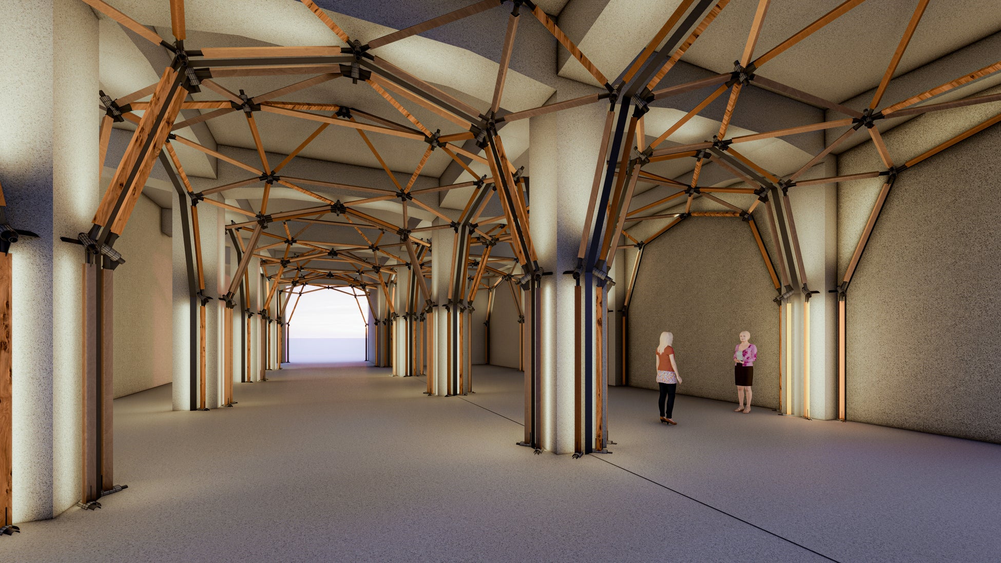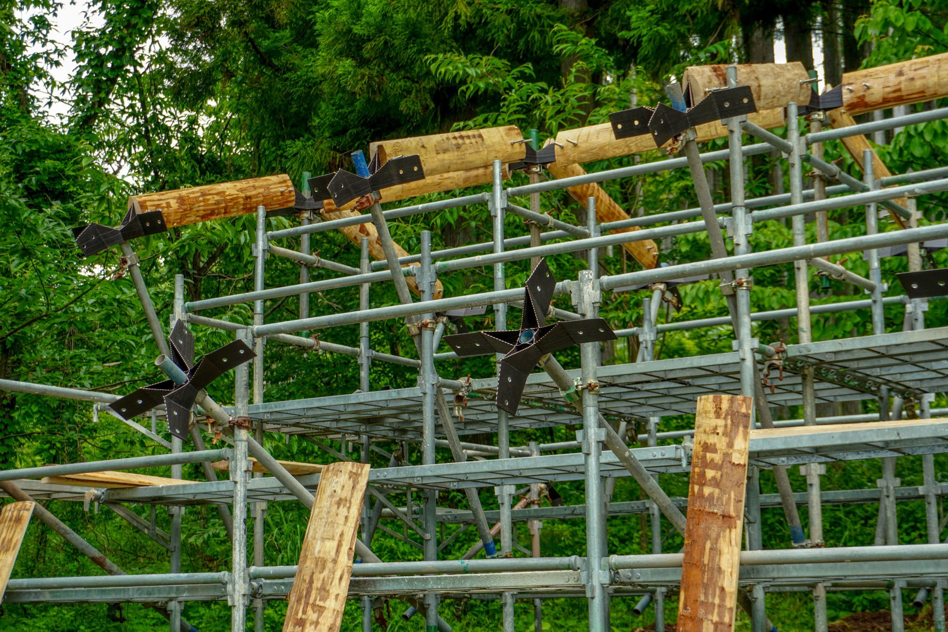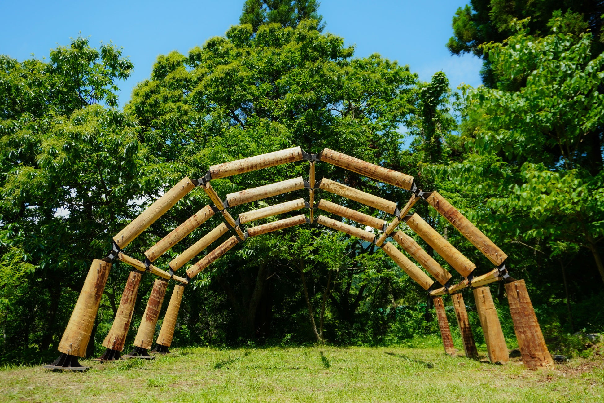 木材については、三重県熊野市の製材業者である株式会社 nojimokuとも連携し、従来廃棄されていた三日月状の周辺部材(ミミ材・チップ材)を建築材料として活用。製材過程で生じる副産材を、建築材料として再価値化することで、 森林循環型社会の一端を実現。金属3Dプリンターと地域木材との組み合わせにより、 建築の多様性・地域性を取り戻し、標準化・大量生産型からの脱却を図った。