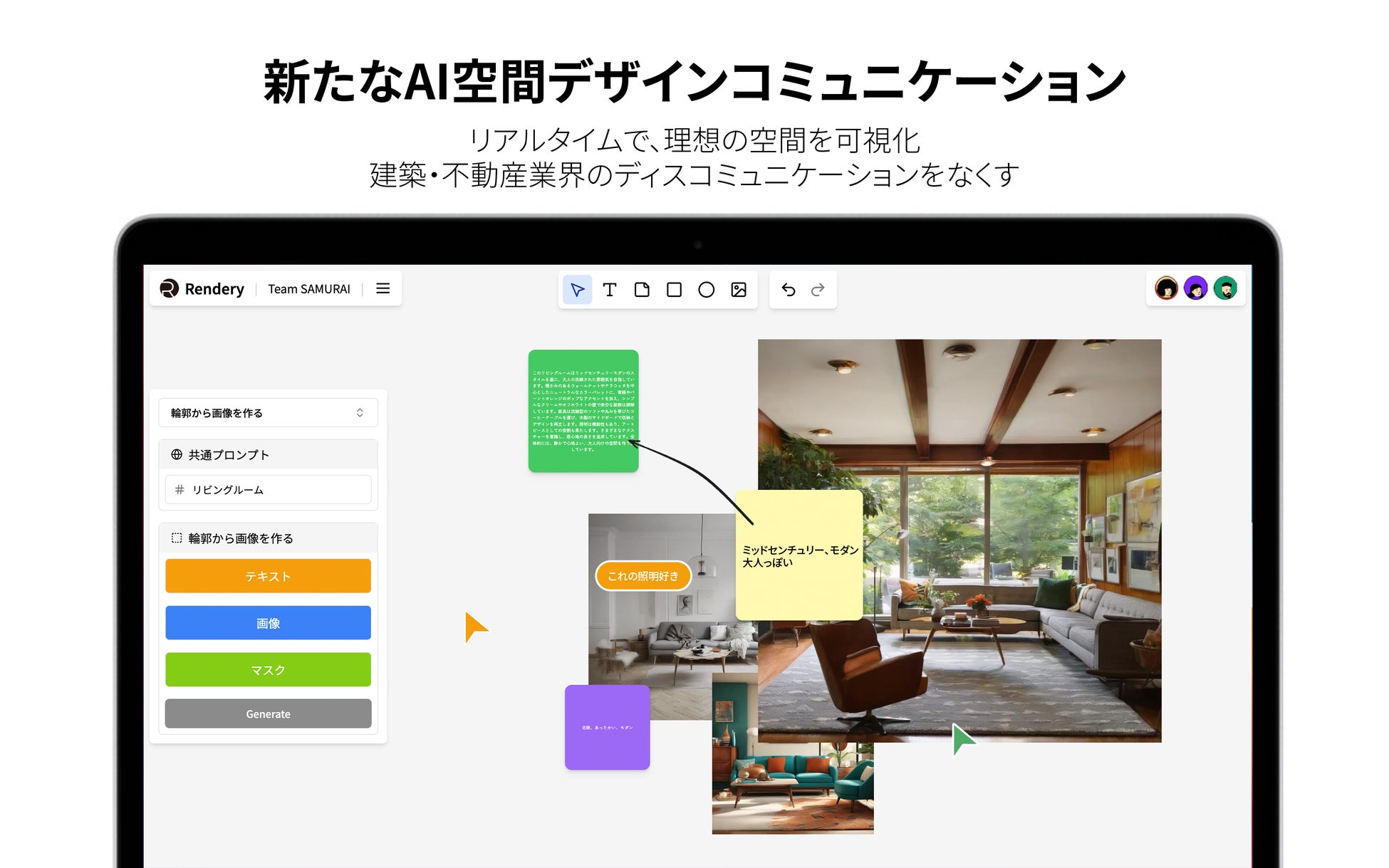 建築向け画像生成プラットフォーム「Rendery」がホワイトボード形式になって正式リリースされます🔥リアルタイムコミュニケーションを通じた新しいデザイン体験をRenderyで経験してみませんか?