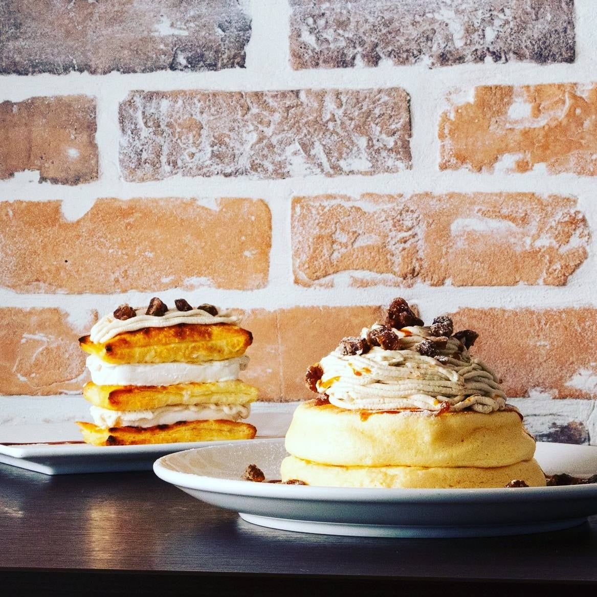 ひとつは「栗のスイーツ」。人気の定番商品だった「栗のクリームリコッタパンケーキ」を茨城県産の和栗を使用した特製クリームに変更して復活!さらに自慢のアイスケーキとパイをミルフィーユ仕立てにして、特製和栗クリームと楽しむ「栗のクリームミルフィーユパイ」や和栗クリームをミルクのスムージーに添えた「栗のクリームミルクスムージー」などを新たにラインナップした。