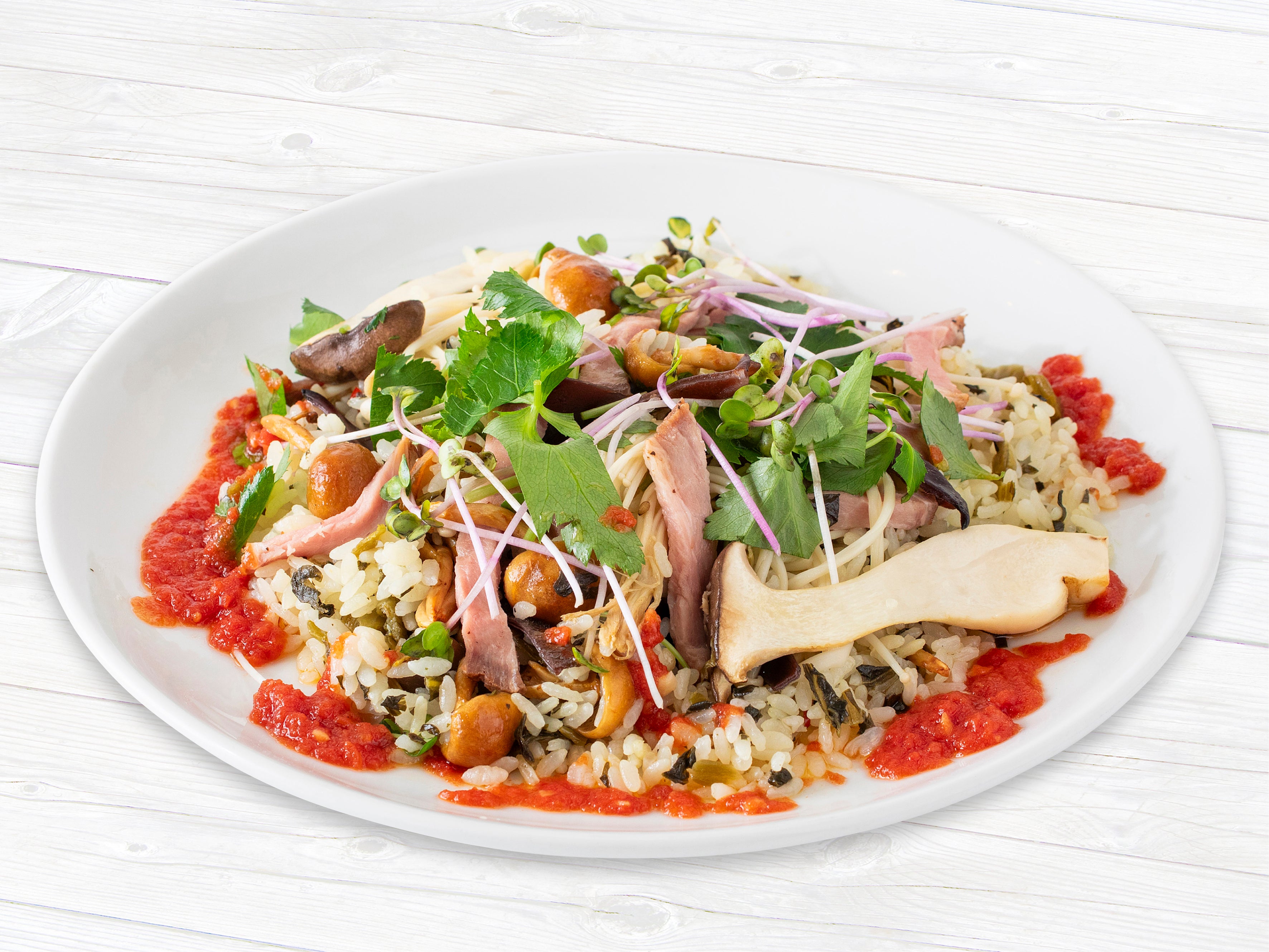 ・信州産きのこの米粉麺まぜそば 1,000円(税込1,100円)