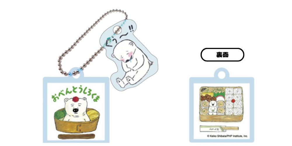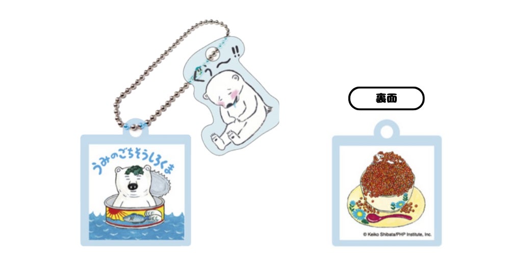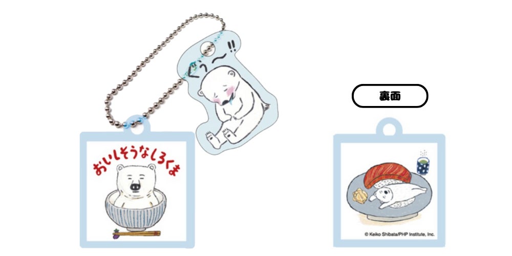 今回は第1作の「おいしそうなしろくま」から第4作の「うみのごちそうしろくま」のイラストをセレクトし、アクリルキーホルダーとして初めてカプセルトイで発売。全部のキーホルダーに、おなかをすかせたしろくまのミニチャームが付属しており、シークレット柄も合わせて5種類を用意。