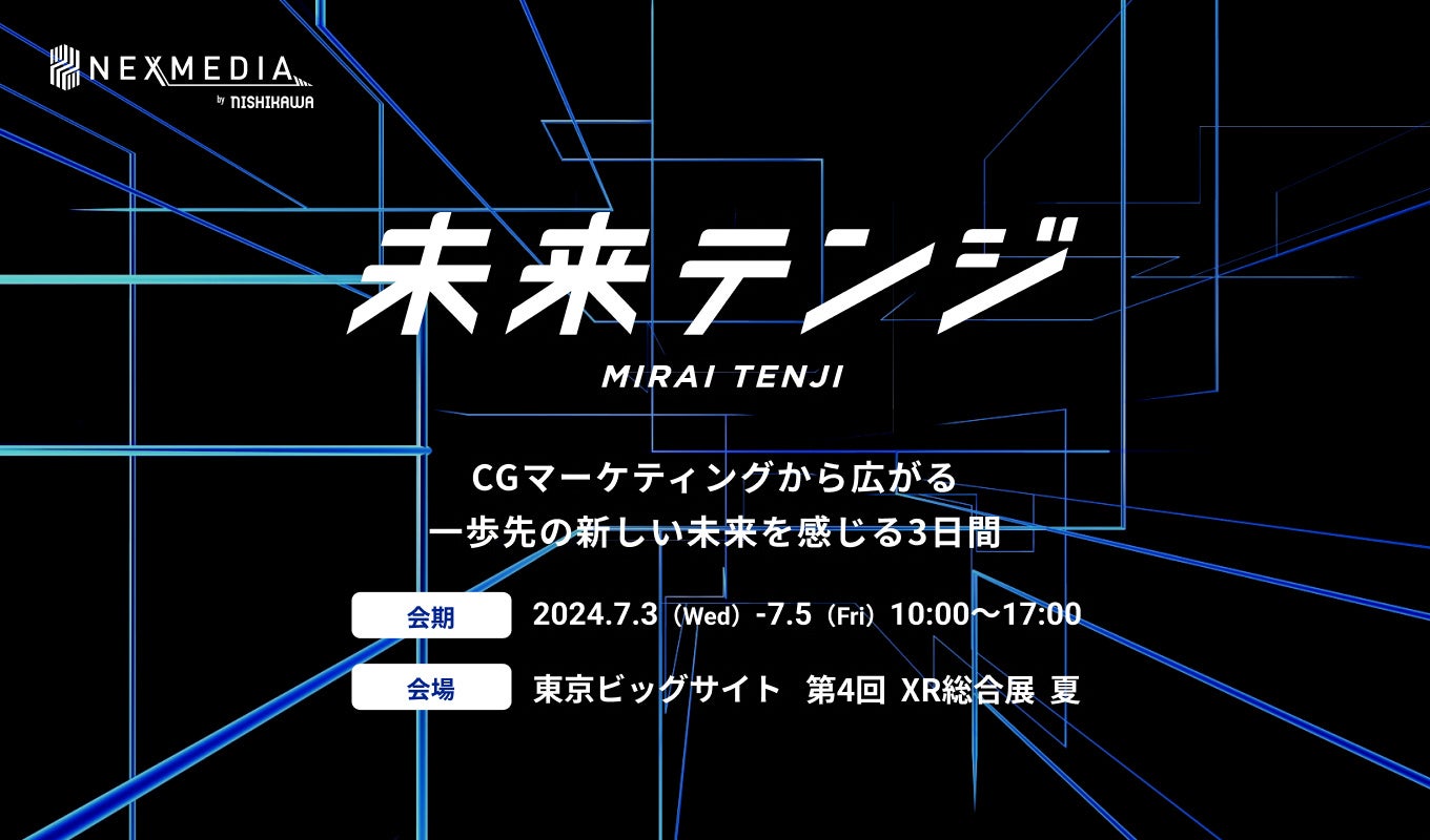 株式会社ニシカワは、2024年7月3日(水)〜5日(金)に東京ビッグサイトで開催される「第4回 XR総合展 夏」に出展いたします。CGデータを活用し、これからの企業を進化させるアイデアをご紹介します。