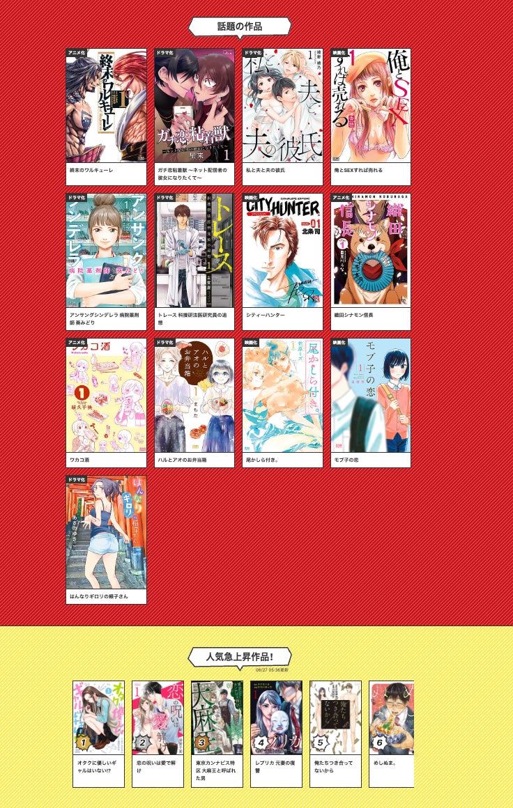 「TVやWebで紹介されていた作品を試し読みしたい」「SNSで見たけど、タイトルが分からない」というお悩みをお持ちの方は、ここで解消!!