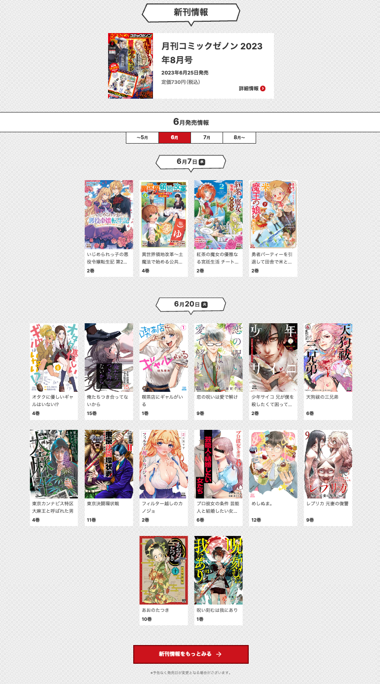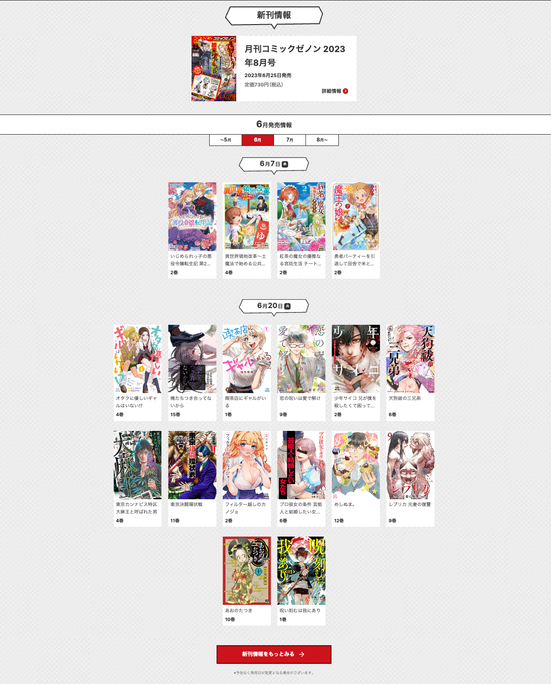 さらに、月毎の新刊タイトルもご覧の通り、ひと目で把握できます。