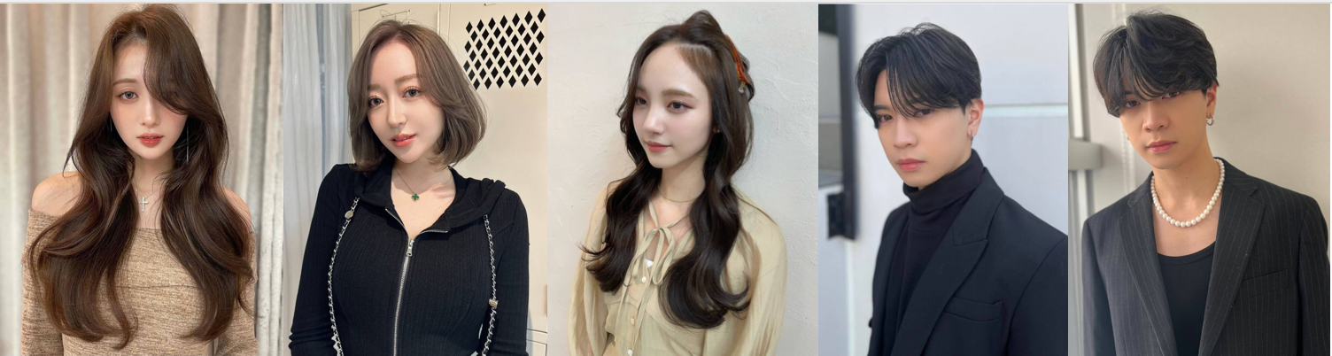 “韓国ヘア”は、顔周りにレイヤーを入れてボリュームを出し、華やかで色っぽい雰囲気を持つヘアスタイルです。前髪のサイドをフェイスラインに繋がるようにカットし、後ろに流すことでくびれを演出。また、ふんわりとした後れ毛がフェイスラインをカバーすることで、小顔効果も実現します。現在、10〜20代の若者を中心に最も人気の高いヘアスタイルのひとつとなっています。
