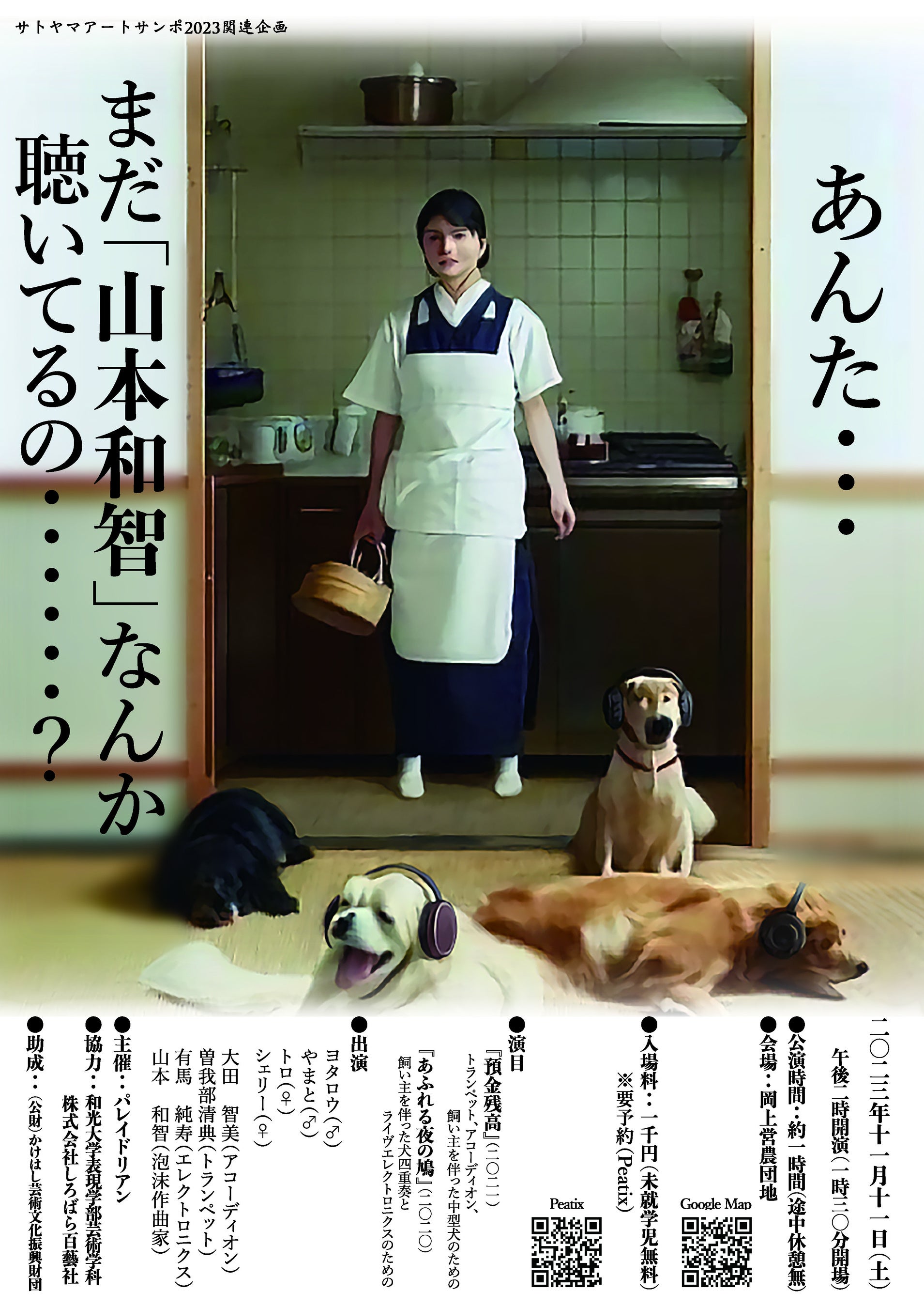 11月11日(土)川崎市麻生区の農園にて山本和智による驚きの音楽実験を開催。4匹の犬と電子音楽の前代未聞の競演が実現する『あんた…まだ、山本和智なんか聴いてるの?』