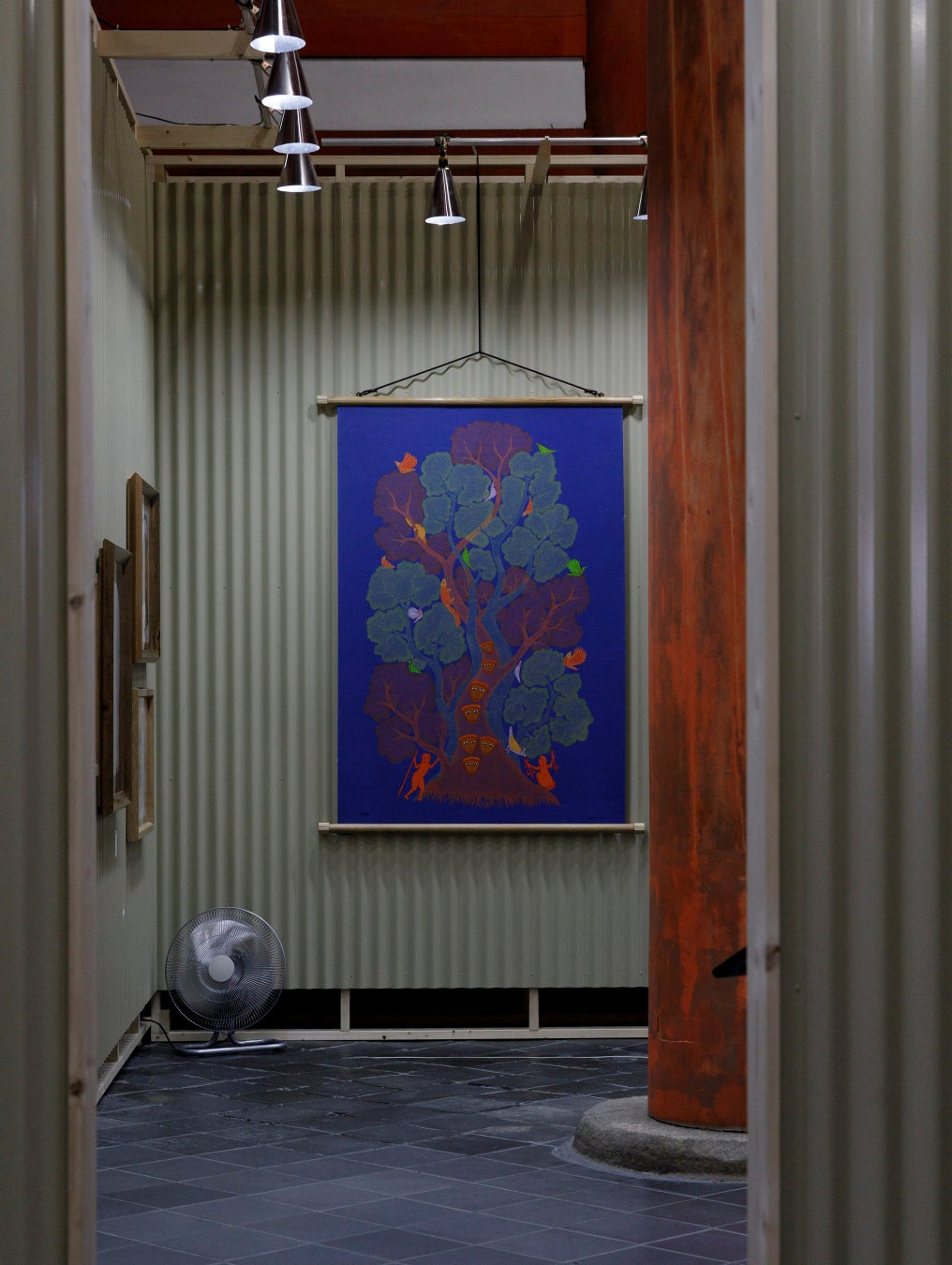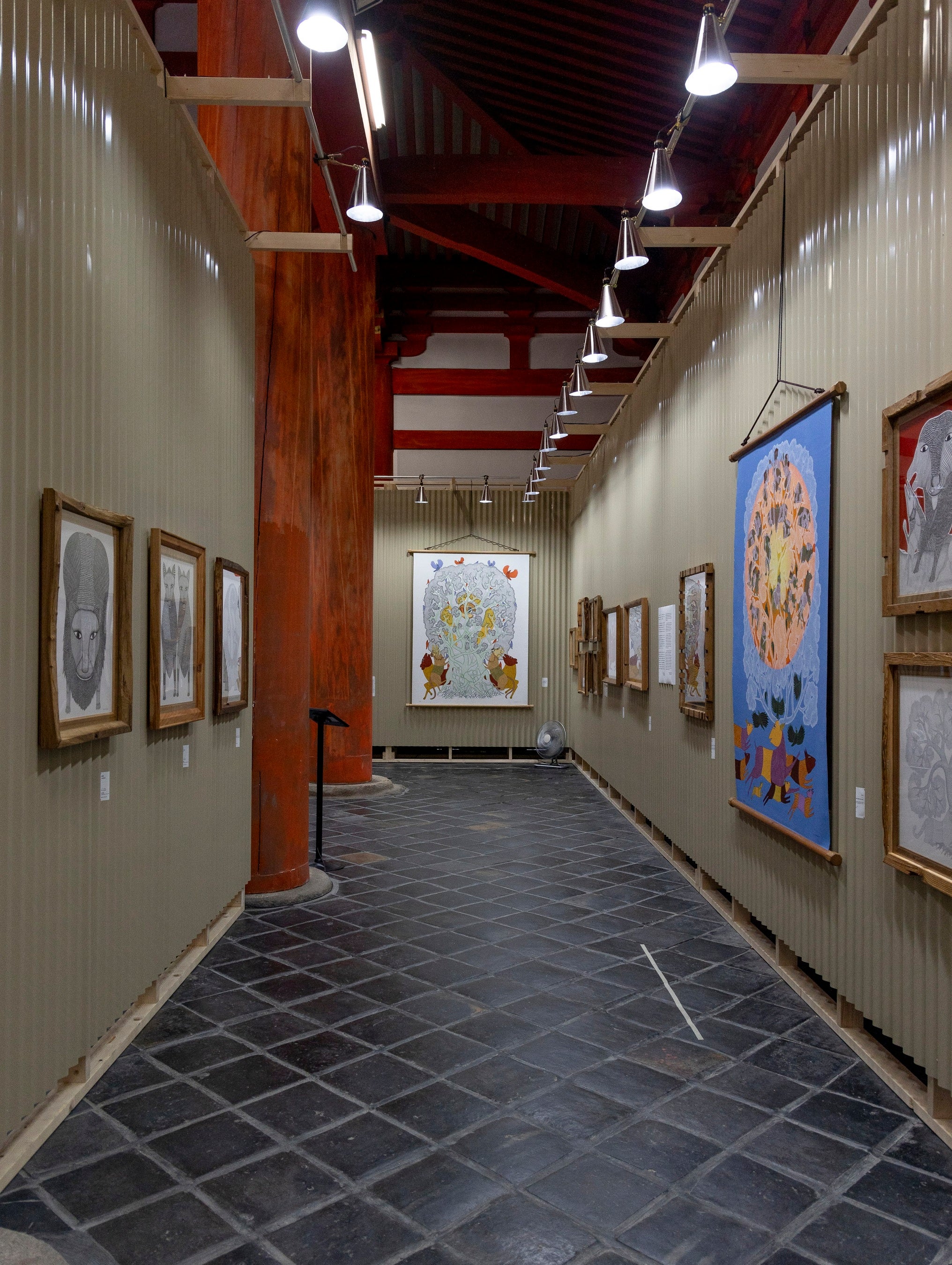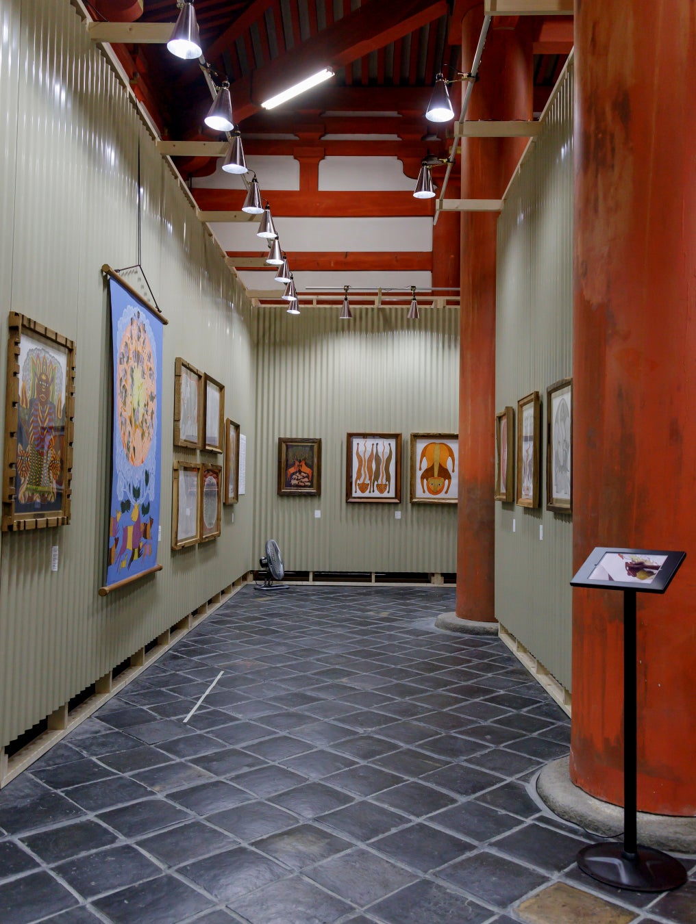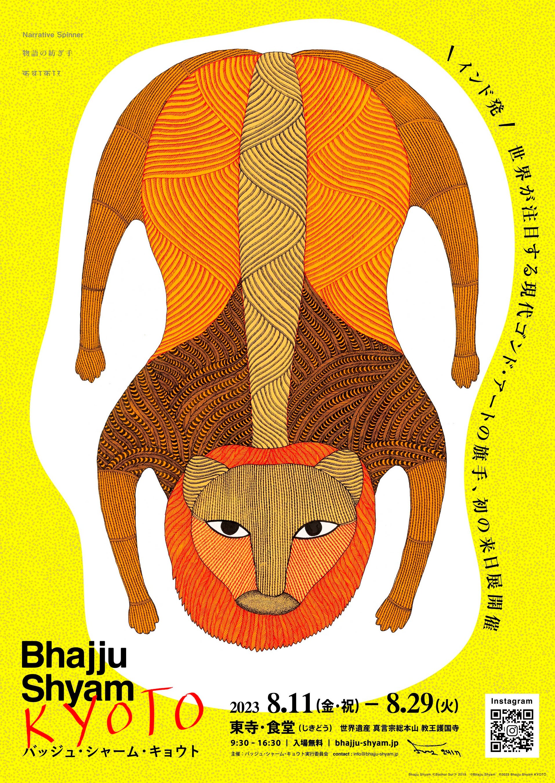 「バッジュ・シャーム・キョウト」は、“森の民”とも呼ばれるインド中部の少数民族であるゴンド族のアーティスト「バッジュ・シャーム」の日本初となる個展です。世界遺産 京都・東寺内にある、平安時代からの床も残される建造物 食堂(じきどう)内に、新たな展示空間を構築し、現代ゴンド・アートの第一人者 バッジュ・シャームの作品約40点を公開。開幕3日にして延べ来場者数が2,000人を記録、展示販売されている原画も大半がSoldとなるなど大きな盛り上がりを見せています。