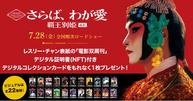 『さらば、わが愛/覇王別姫 4K』(7月28日(金)公開/配給:KADOKAWA)のムビチケ前売券(オンライン)をムビチケのウェブサイトで購入すると、映画コレクティブルマーケットプレイス「mov」にてレスリー・チャンが表紙となっている「電影双周刊」のデジタル証明書(NFT)付きデジタルコレクションカードが1決済につき、必ず1枚もらえる特典カード取得URLをランダムでプレゼント。「SUPER RARE / RARE / GOLD / SILVER / BRONZE / NORMAL」の6種類、合計22枚のレアカードです。