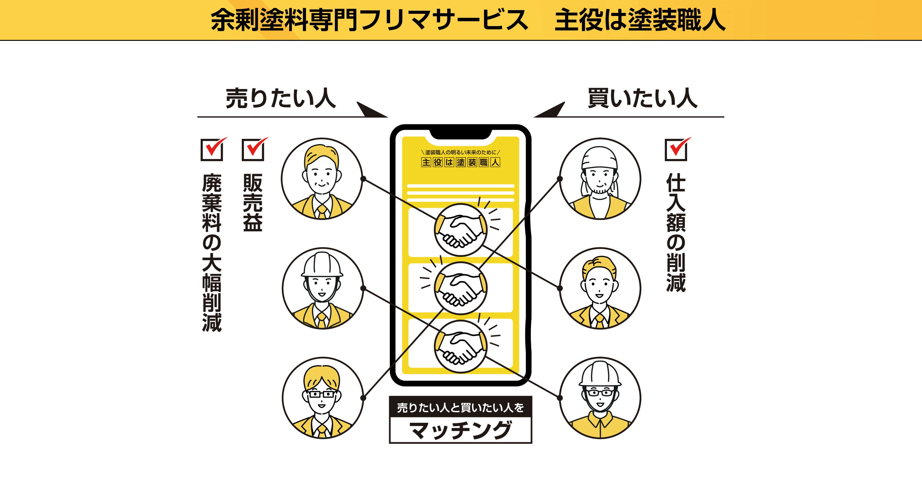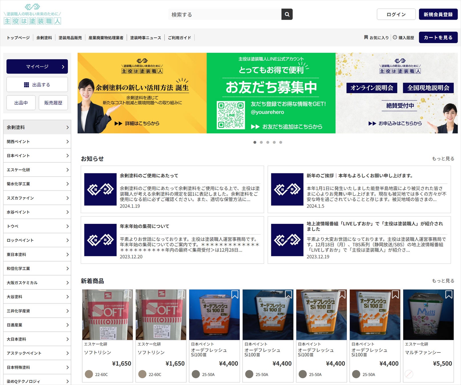 こういった課題を打開する1つの策として2023年にスタートした『主役は塗装職人』は、塗装業の現場で発生する余剰塗料(残塗料)をサイト上で相互に売買できるフリマサイトです。