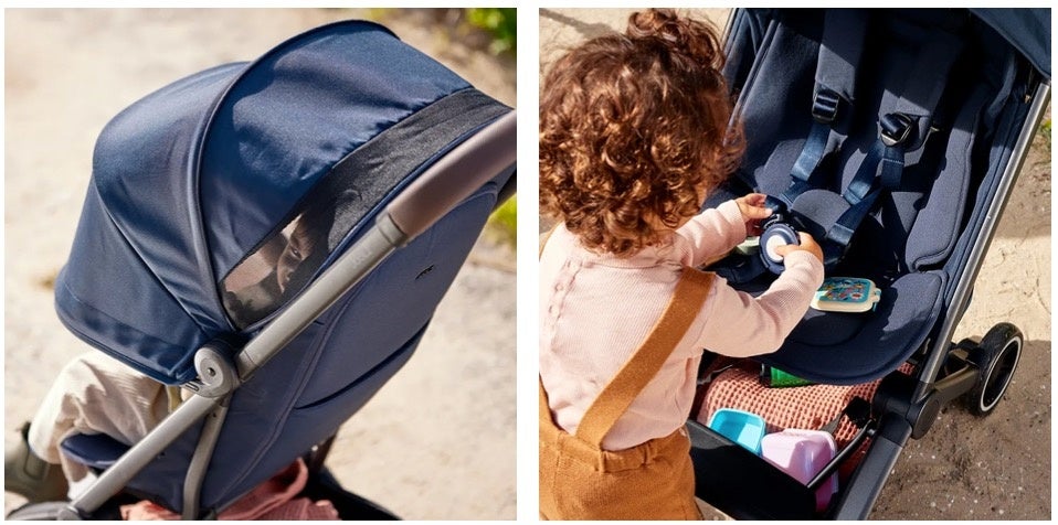 都市で生活するファミリーにとって、軽く持ち運びが容易なモバイルベビーカーは小さな子どもを追いかける親の良き相棒。Aer+にはショルダーストラップがついてより便利に。