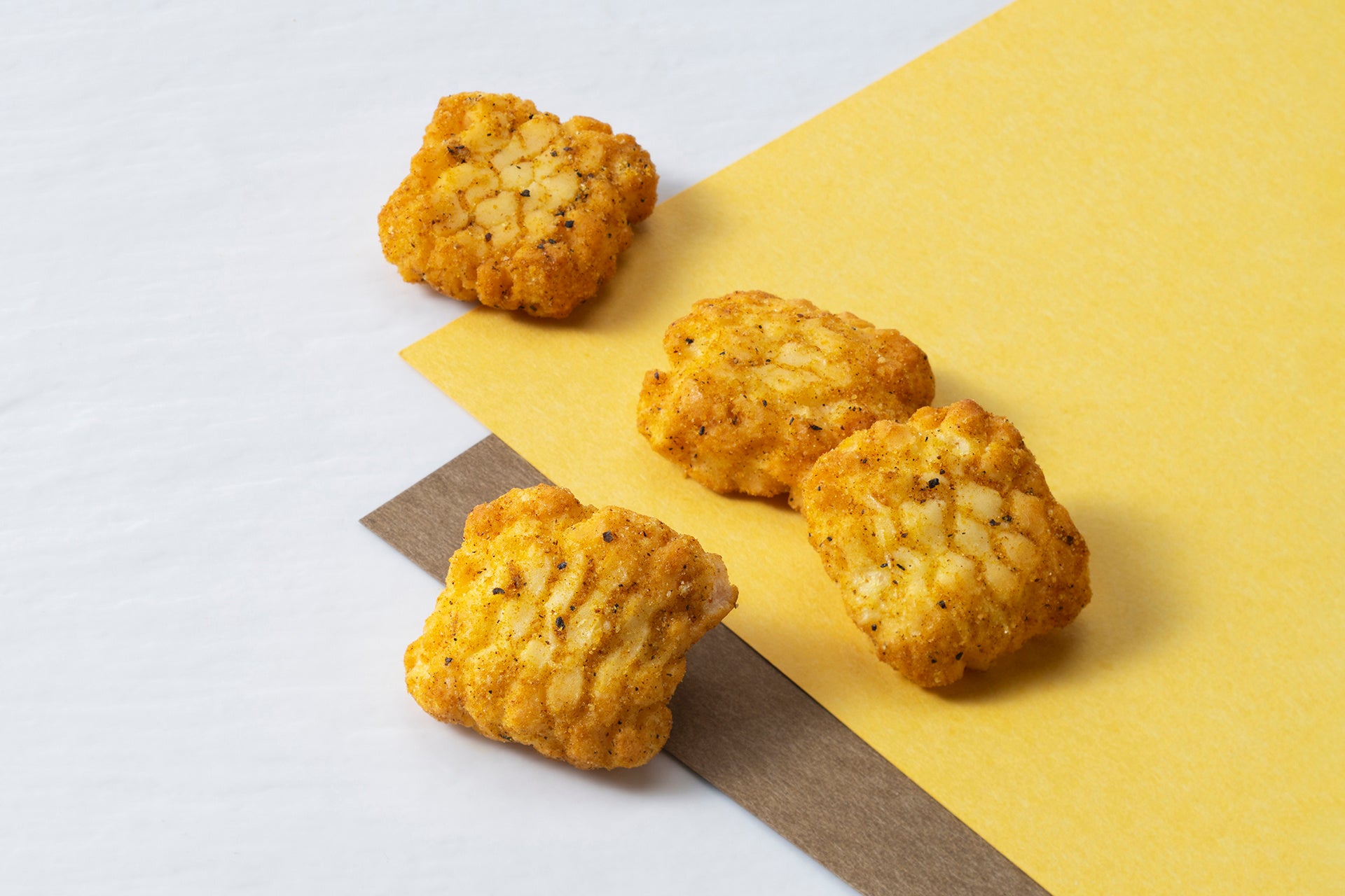 やさしい醤油味と香ばしさが広がる味付けで、お米のつぶを感じていただけるザクザクとした食感が特徴です。