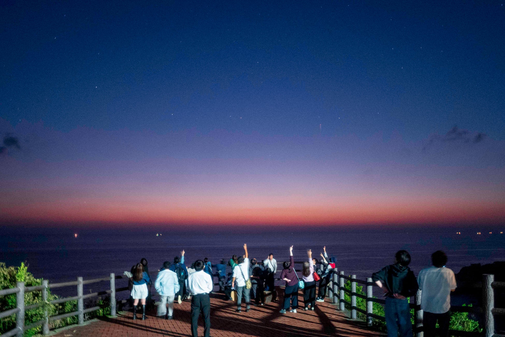 三段壁では西から南の方角に海が広がり、秋ごろから宙と海がつながる景色、海にそそぐ天の川がご覧いただけます。地元でガイドをしている星空案内人が、その時見える星や惑星、星にまつわるお話など30分間の星空観察会を行います。
