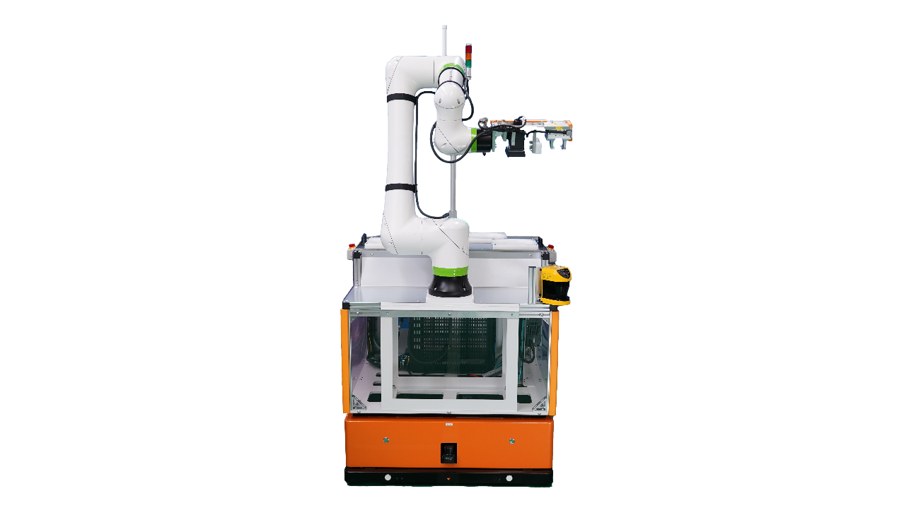 AGV(無人搬送車)にロボットアームとビジョンを搭載した、人と協働作業が可能な移動型搬送ロボットの事です。ハンド部分は用途に応じてカスタマイズが可能になっており、自動給電を行うことで24時間の稼働も実現。また、アーム部分に搭載された「iRVison」がマーカーを読み込んで三次元補正を行ない、その精度は±1mm以内に位置補正が可能。