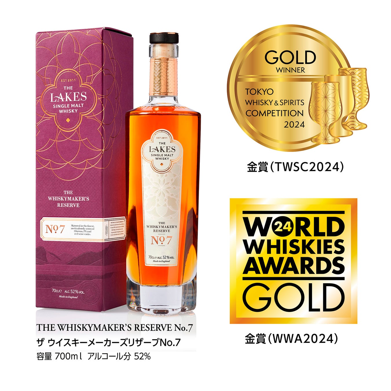 また、去る2月にロンドンで開催の世界的なウイスキーコンテスト「World Whiskies Awards 2024」においてもTHE WHISKYMAKER'S RESERVE №7(ザ ウイスキーメーカーズリザーブ №7)が金賞を受賞いたしました。