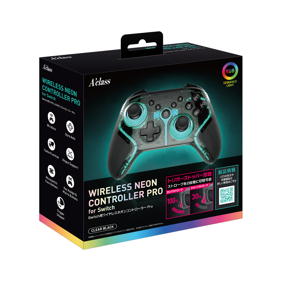 テレビゲームの周辺機器やトレーディングカードゲームのサプライ商品を製造販売する株式会社アクラス(⼤阪市中央区 代表取締役:森本琢磨)は、SwitchやWindows OSでお使いいただける「Switch⽤ワイヤレスネオンコントローラーPro」を2024年7⽉に新発売いたします。