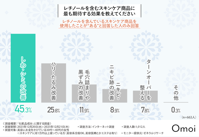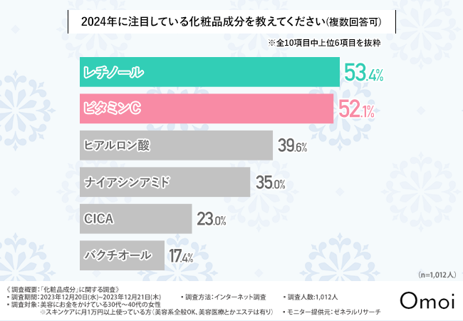 【2024年注目の化粧品成分】化粧品は「成分買い」トレンド?約半数が選んだ「レチノール」が、引き続き最も注目されている成分という結果に