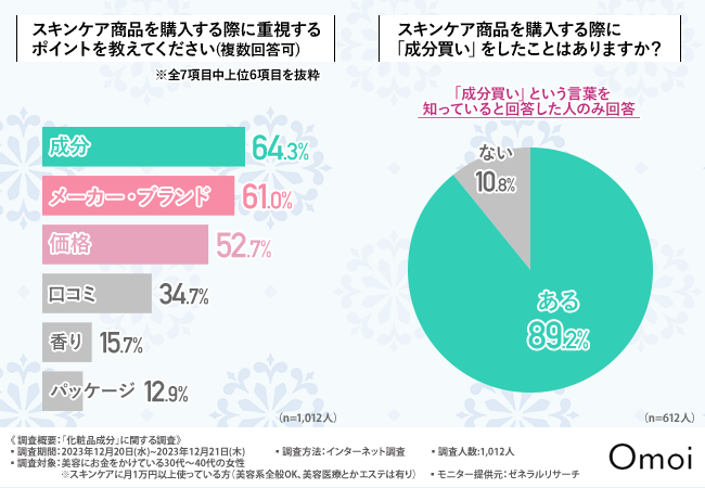 成分を重視してスキンケア商品を購入する方が多数、存在することが明らかになりました。