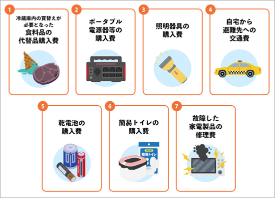 ②③④は停電時間中に被保険者が負担した費用を補償。