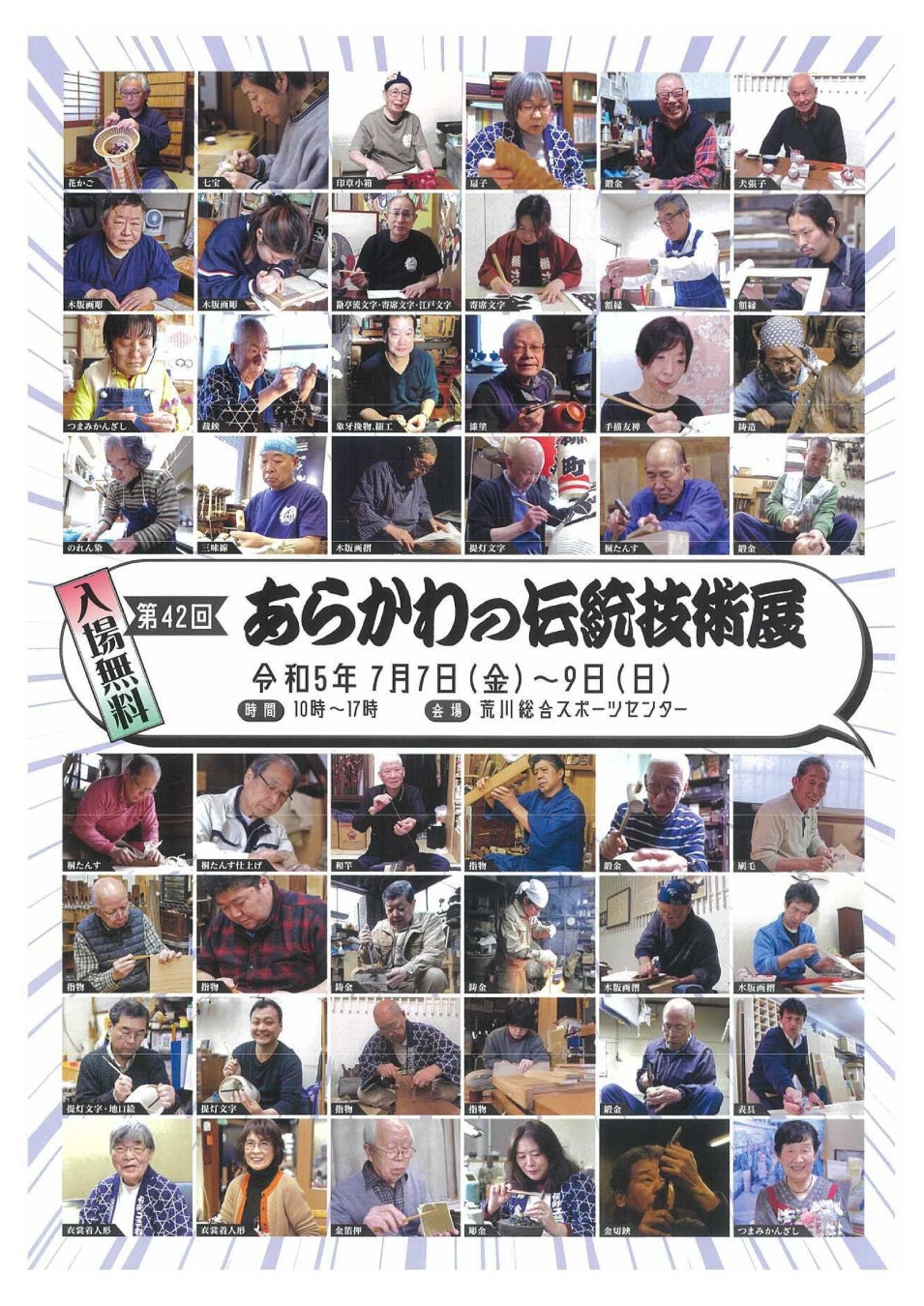 7月7日(金曜)から9日(日曜)の3日間、荒川総合スポーツセンターで「あらかわの伝統技術展」を開催します。