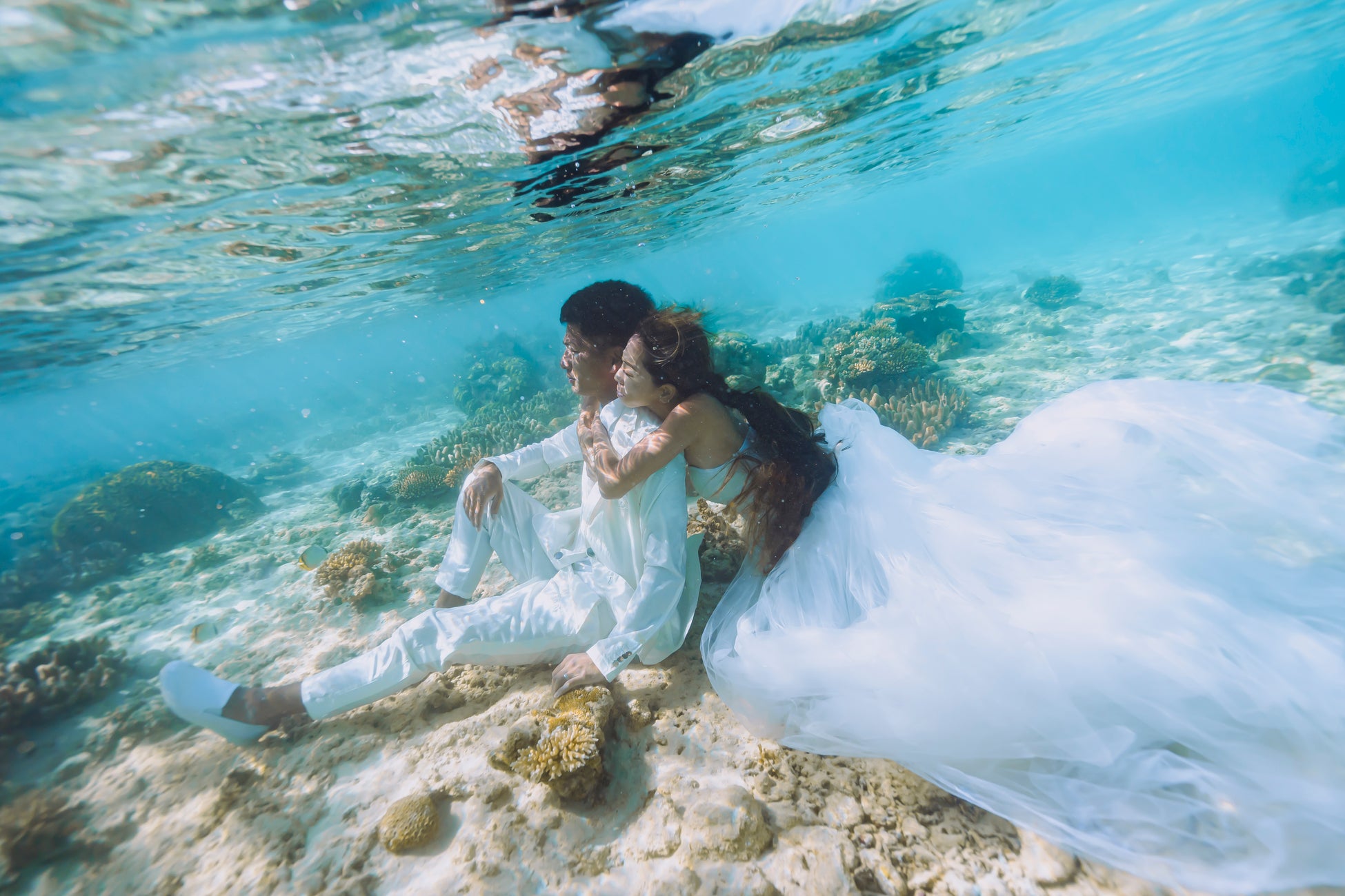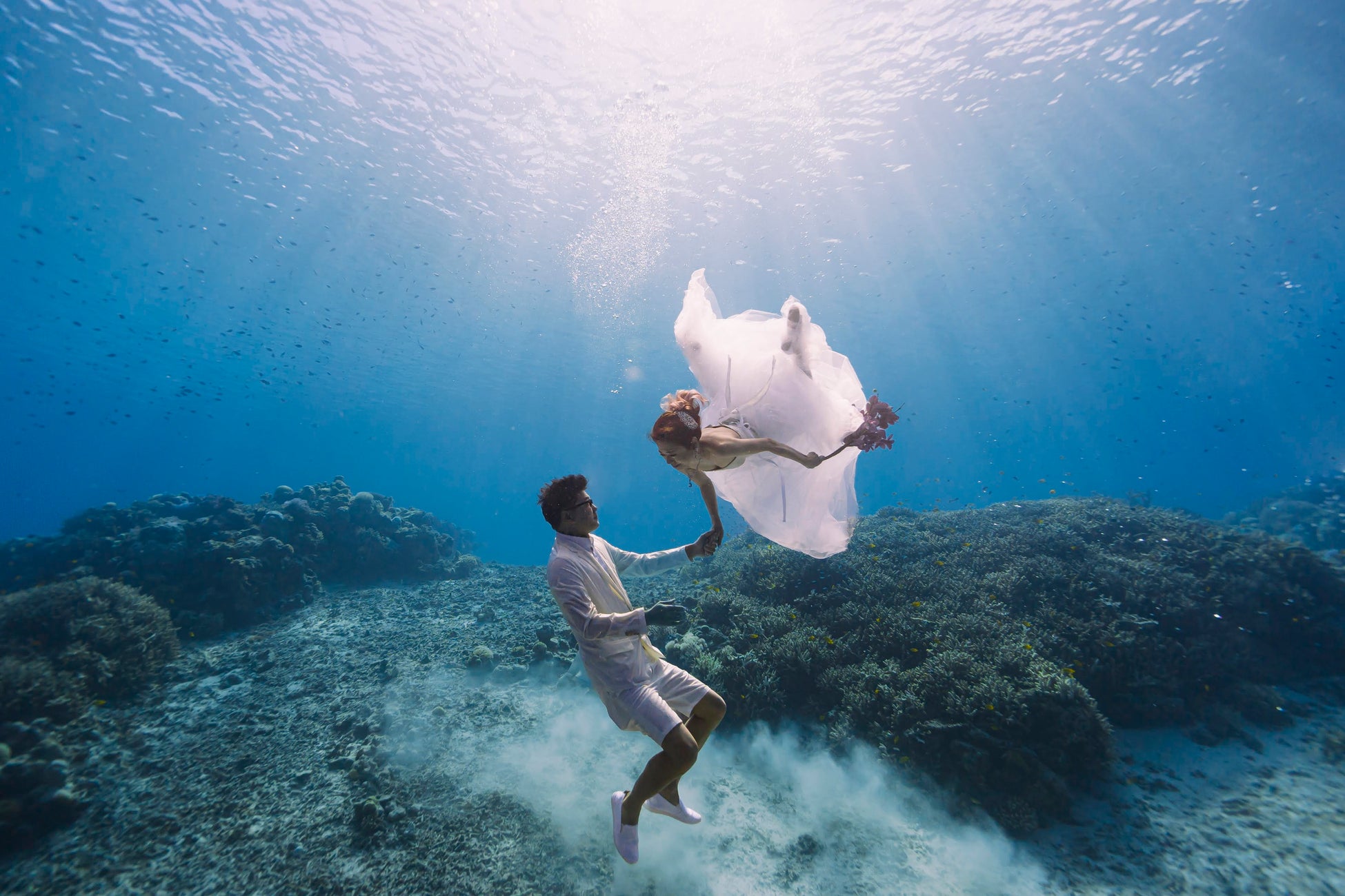 海辺の挙式や撮影だけでなく、水中でのセレモニーやマリンアクティビティなど、これまでの制限を超えたウェディングが叶えられます。