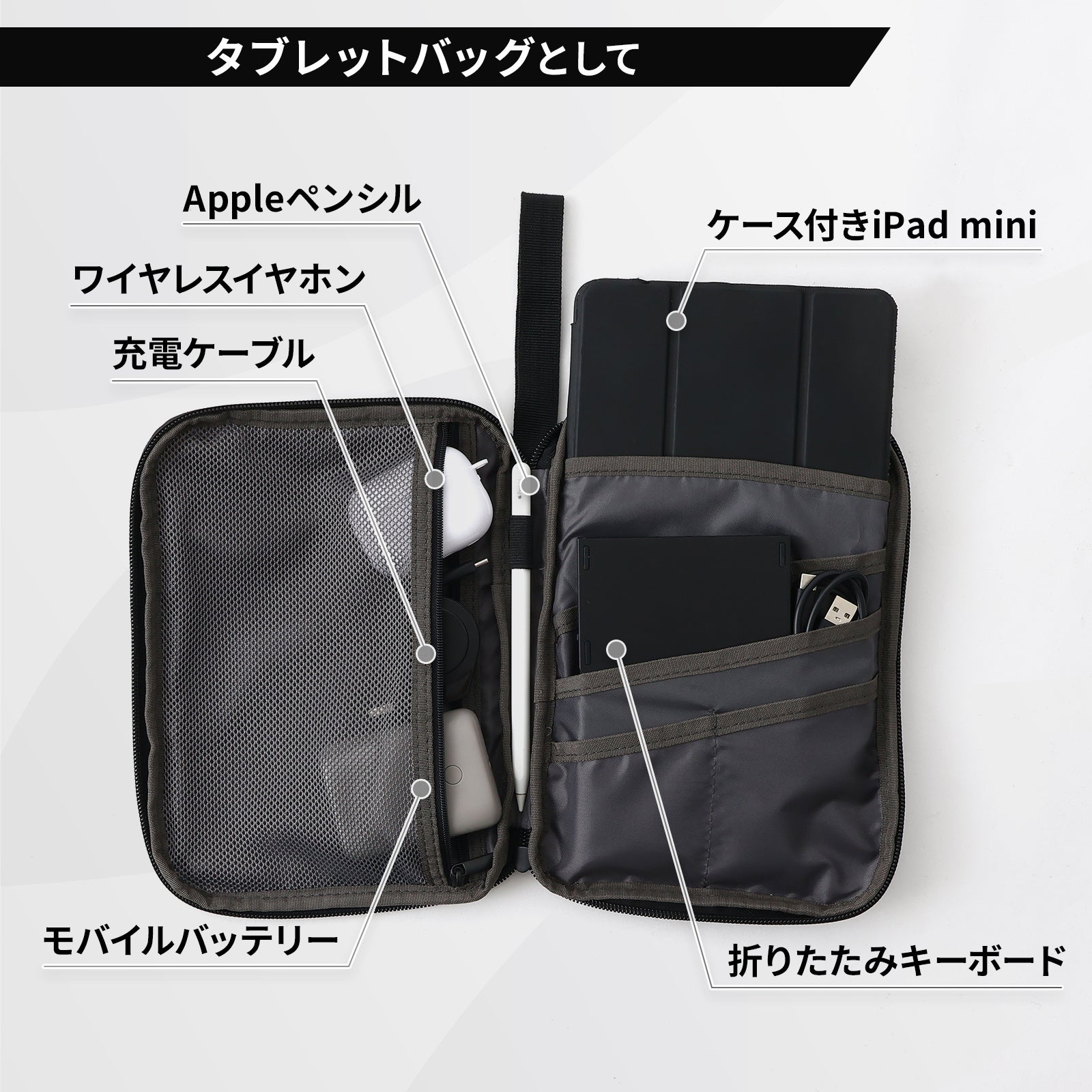 8.3インチ以下のiPad miniやKindleなど小型タブレット用のバッグにご使用頂けます。ケースやカバーを付けた状態で収納が可能(本商品の内寸とカバーのサイズを予めご確認されることをお奨めします)。