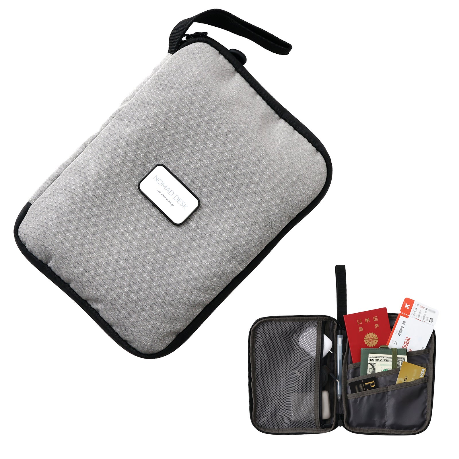 パスポートや航空チケット・乗車券/特急券のほか、ipad miniなど8.3インチ以下の小型タブレット、モバイルバッテリー、ワイヤレスイヤホン、充電ケーブル、小さめな財布、カード類など移動中に必要なモノだけ収納。