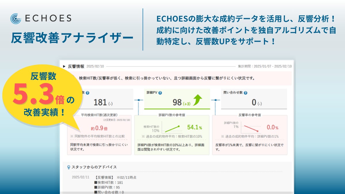 ECHOES、新機能「反響改善アナライザー」をリリース! 先行導入物件では反響数「5.3倍」を記録