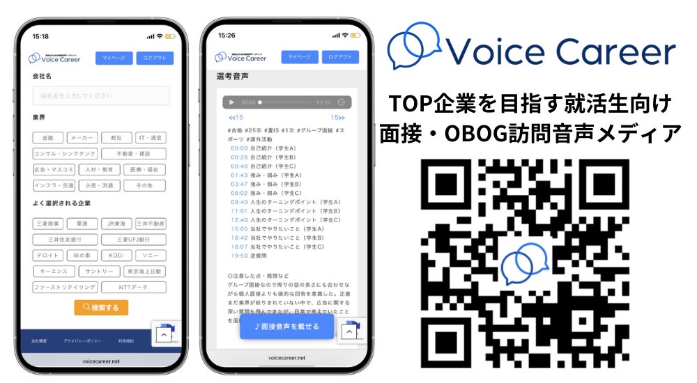 面接・OBOG訪問音声メディア「ボイスキャリア」:https://voicecareer.net/