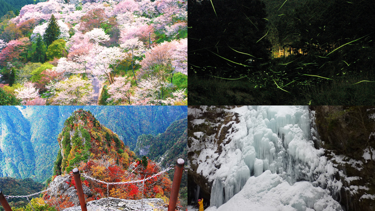 また、近隣観光では春は吉野山の桜、夏はホタル、秋は大台ケ原の紅葉、冬は氷瀑など、四季折々の見どこ