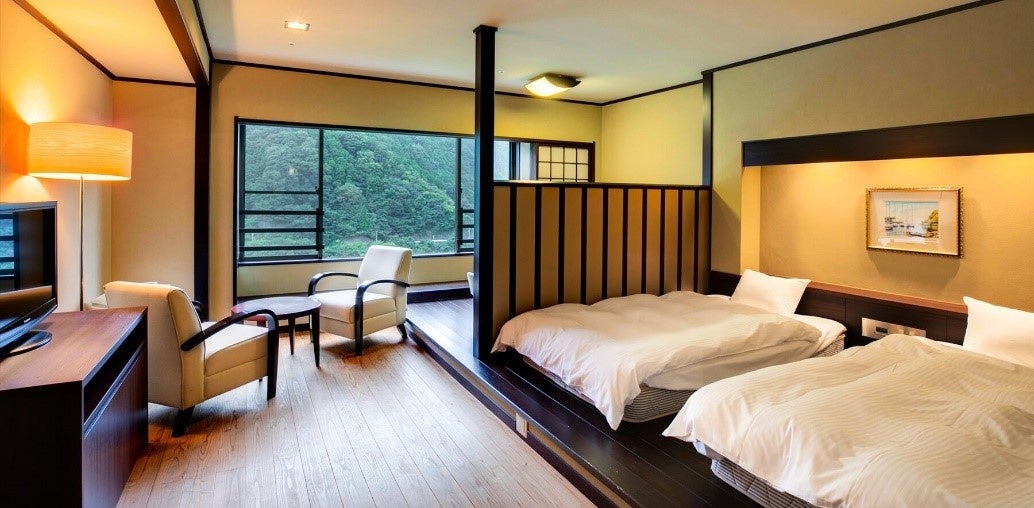 おおたき龍神湖(吉野川)を望む展望露天風呂付き特別室や、洋室、和洋室、落ち着いた雰囲気の和室をご用意しております。木のぬくもりを感じるお部屋で、ごゆっくりとお過ごし頂けます。