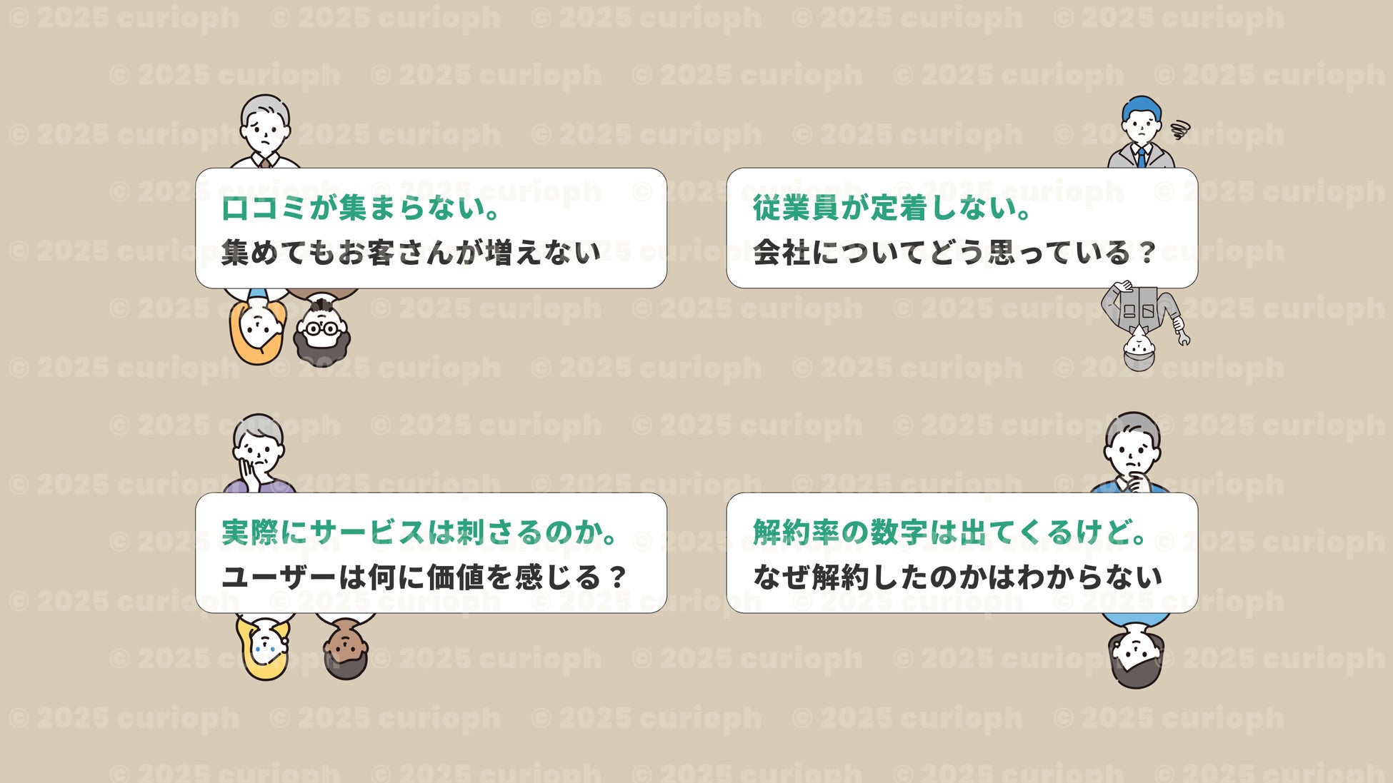 「現状把握はしたいけど、調査はちょっと面倒」という課題に対して私達がまるごと代行し、”見えない本音”の収集と活用をご提供します。