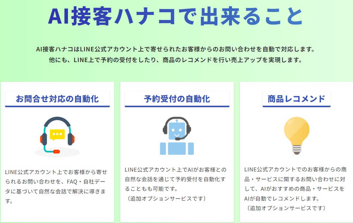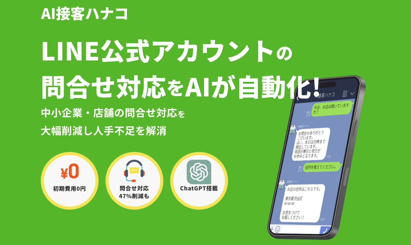 LINE公式アカウントの問合せ対応を自動化するAIチャットボット「AI接客ハナコ」の提供開始