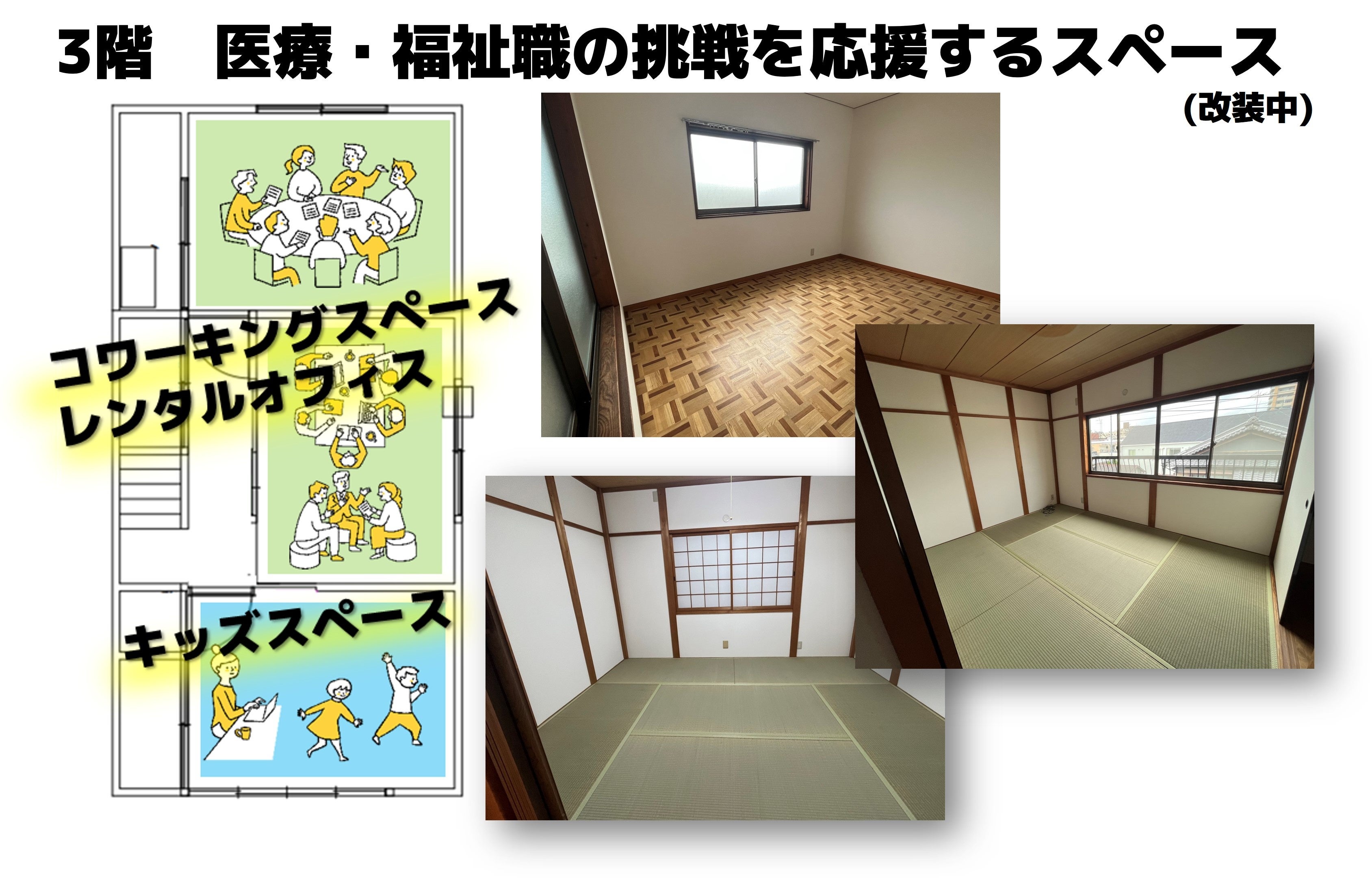 3階 福祉職・医療職のためのコワーキングスペース レンタルオフィス