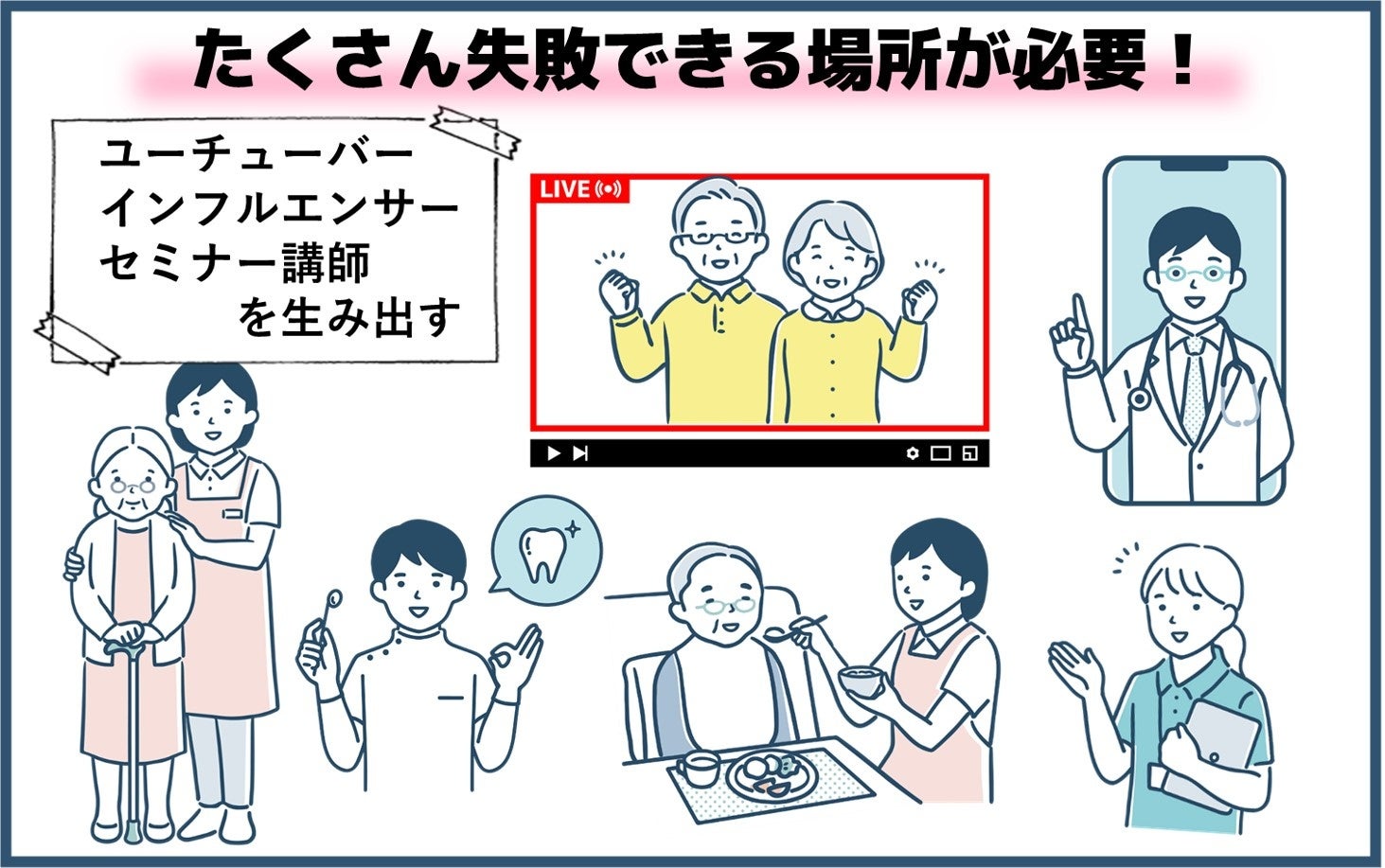 例えば、医療・福祉の専門家をSNSの専門家がサポートしてユーチューバーやインフルエンサーを育成することもできるでしょう。