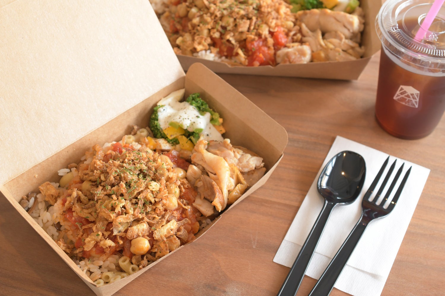 ランチボックスはテイクアウト容器でお作りしており、イートイン・テイクアウト共に可能です。