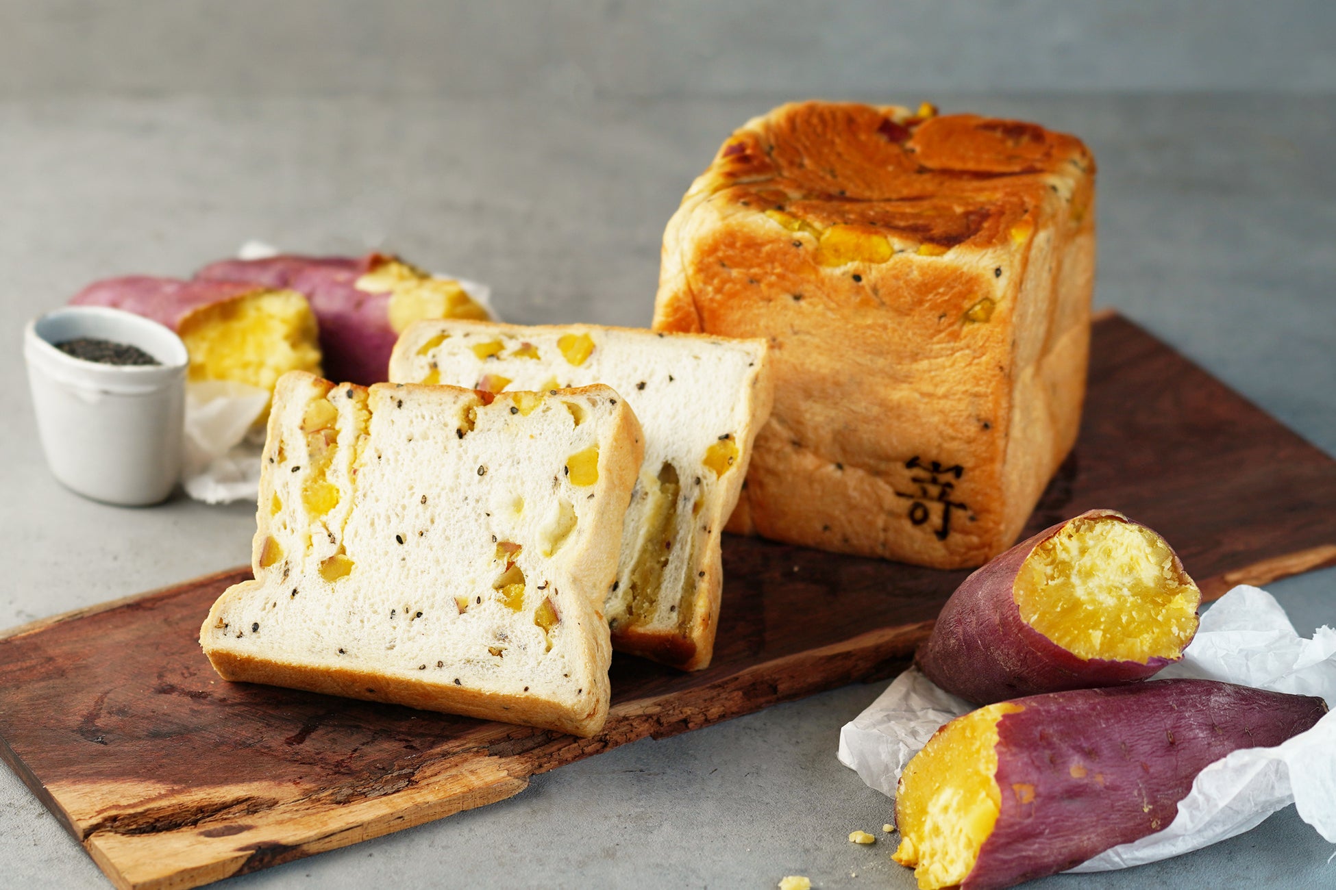 秋に食べたい「焼き芋のような」しっとりスイーツ食パン、10月1日(日)より「なると金時と黒ごまの食パン」が登場します。