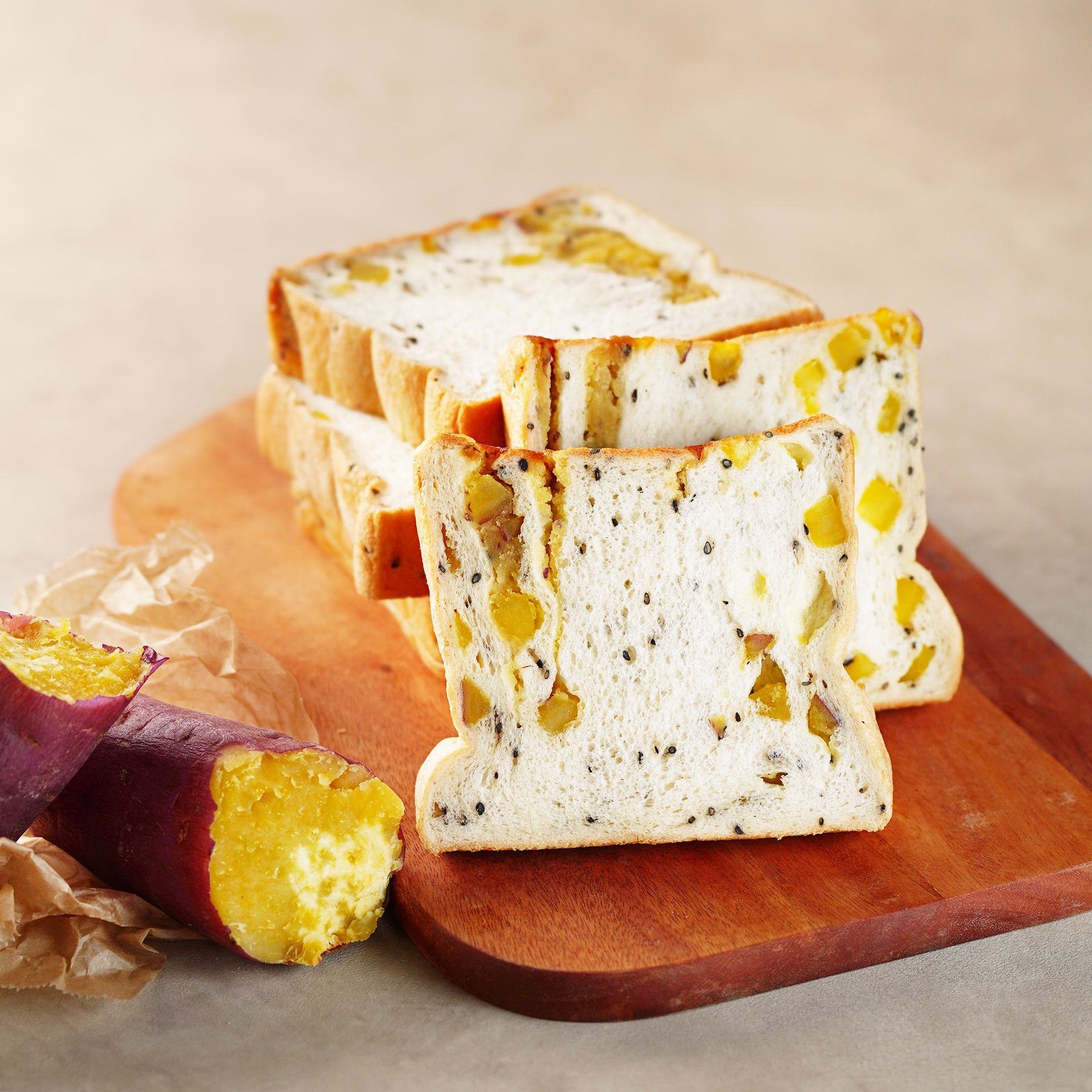 口の中で弾ける黒ごまの香りが、秋ならではの美味しさを感じることのできる食パンとなっております。