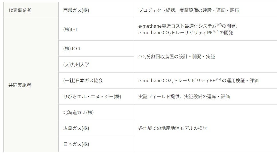 西部ガス株式会社、株式会社IHI、株式会社JCCL、国立大学法人九州大学、一般社団法人 日本ガス協会、ひびきエル・エヌ・ジー株式会社、北海道ガス株式会社、広島ガス株式会社、および日本ガス株式会社が共同で検討を進めていた「地域原料活用によるコスト低減を目指したメタネーション地産地消モデルの実証」(以下「本実証事業」)が、9月27日、環境省の令和5年度「地域共創・セクター横断型カーボンニュートラル技術開発・実証事業(二次公募)」に採択されました。
