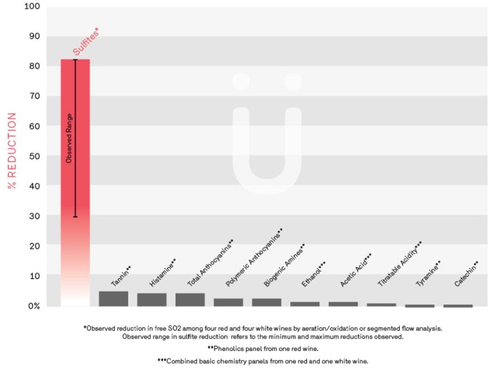 ワインに必ず入っている保存剤としての亜硫酸。やや苦み成分がワインの味わいを変えています。亜硫酸はワイン醸造には必要ですが、飲む際には、もう不要なのです。不要な亜硫酸だけを除去、ワインを引き立てます。