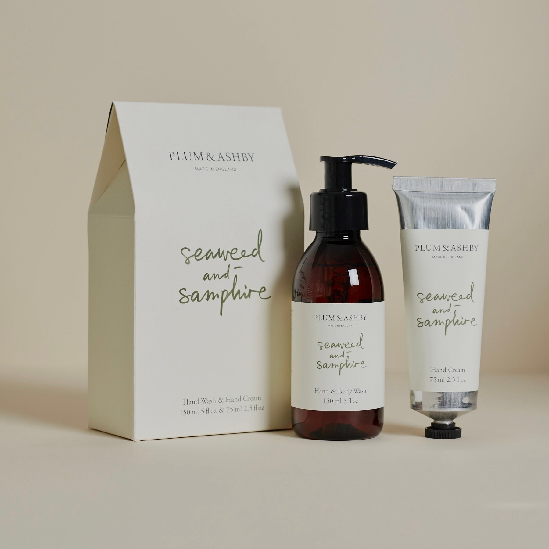 ベストセラーの98%ナチュラルなハンド&ボディウォッシュのハーフサイズとハンドクリームをセットにしたギフトボックス。 潮風を感じるようなフレッシュで透明感のあるサンファイアに、爽快感のあるスペアミントと柑橘を加えた、英国の海沿いの静寂な散歩時間のような心を静める「シーウィード&サンファイア」の香り。